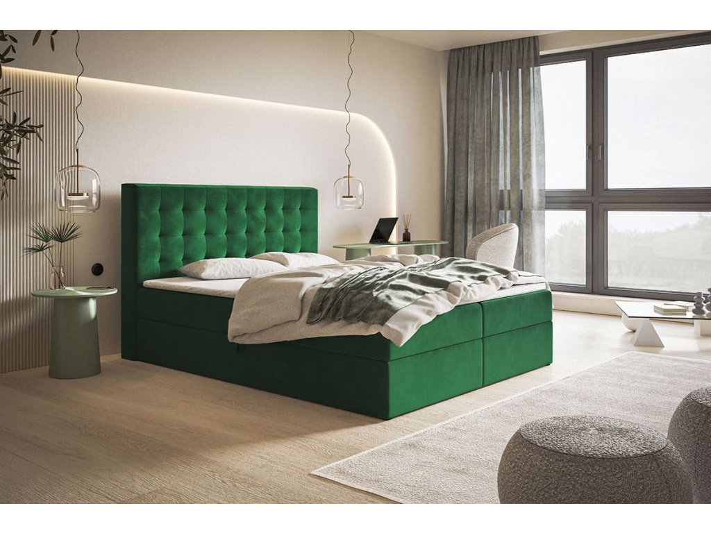 Šířka 160 cm, délka 214 cm. Americká postel s prošívaným čelem a velkým úložným prostorem. Na matrace, které jsou součástí lůžka si můžete dokoupit ochranný topper.