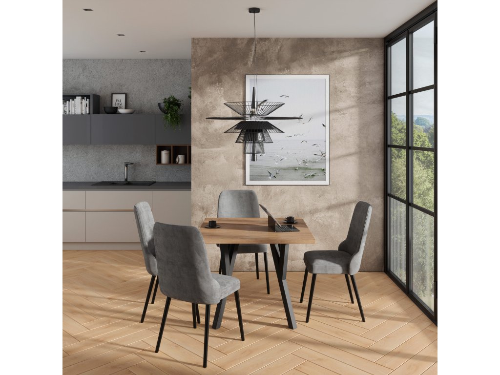 Rám i nožičky jsou vyrobeny z bukového dřeva v černé barvě. Na polský-nábytek.cz si můžete zakoupit i sestavu s jídelním stolem s čtyřmi židlemi. Barvu čalouněného potahu si můžete zvolit z mnoha odstínů látek, které naleznete níže.