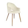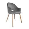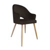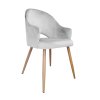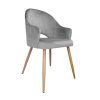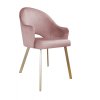 Luxusní čalouněná jídelní židle inspirována skandinávským designem s loketními opěrkami. Vybírat si můžete z několika variant dekorů nožiček a barevného čalounění.