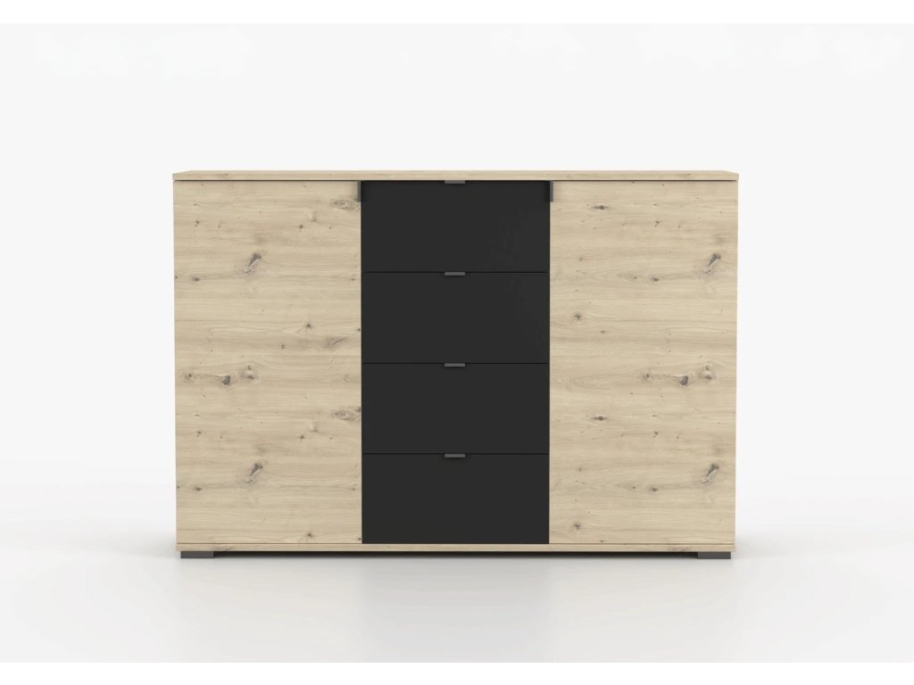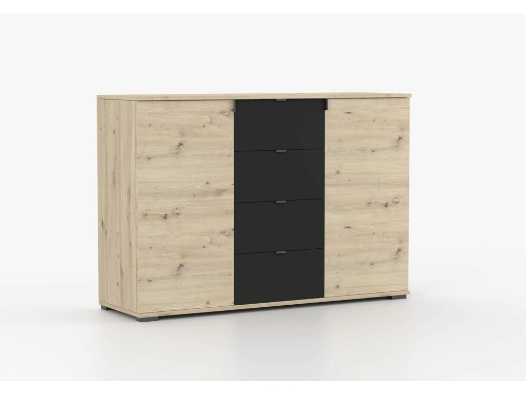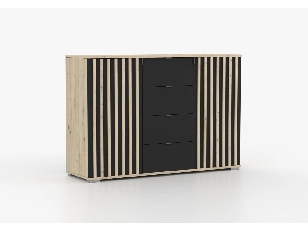 Komoda Vice je praktický kus nábytku a je vhodný do každé místnosti. Zaujme svým výběrem barevného designu a jednoduchým designem. Má čtyři prostorné a praktické zásuvky a dvě dvířka.