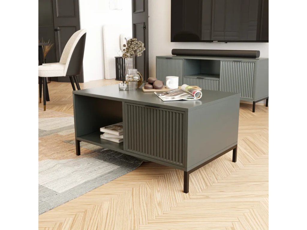 Nadčasový konferenční stolek Woder nejenže vylepší jakýkoli prostor svým jedinečným designem, ale také nabízí špičkovou funkčnost. Tento elegantní stolek je navržen s ohledem na praktické potřeby a disponuje funkční policí a prostornou zásuvkou, která pojme drobné předměty a udrží váš interiér uklizený. Konferenční stolek je vyroben z vysoce kvalitní 18mm laminované desky. Jeho unikátní, drážkovaná 18mm MDF přední strana dodává celé kompozici charakter a sofistikovanost. S pečlivou pozorností k detailu jsou hrany stolku opatřeny ABS dýhou, která zajišťuje odolnost a estetický vzhled.