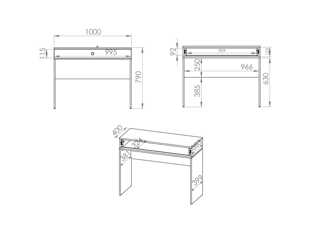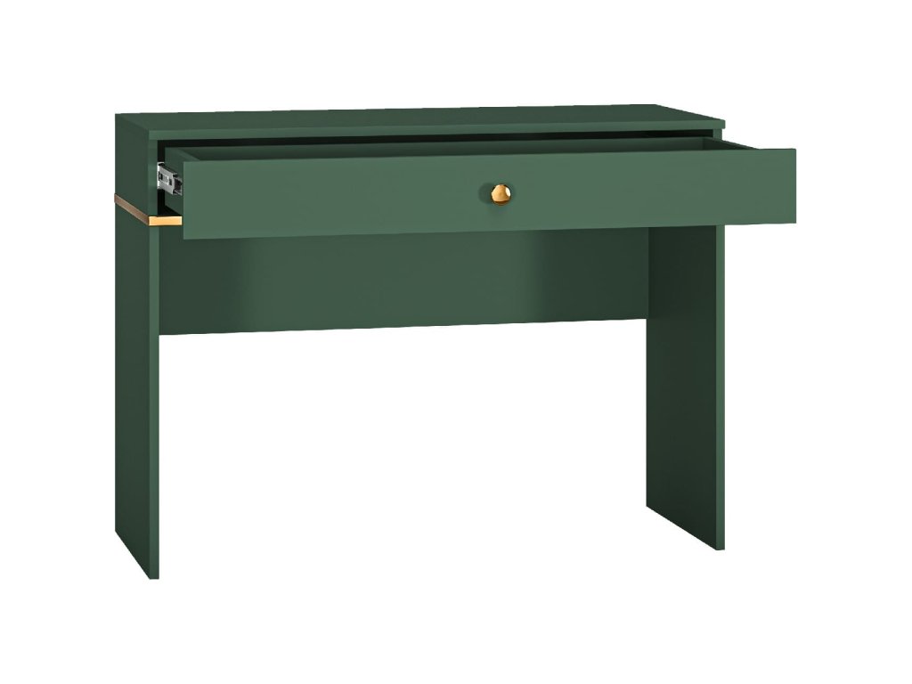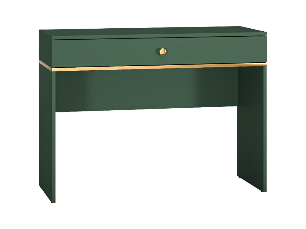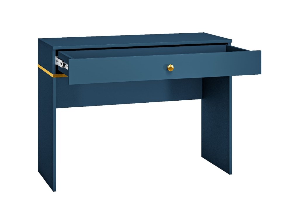 Šířka 100 cm, hloubka 40 cm, výška 79 cm. Luxusní kosmetický stolek s výsuvným šuplíkem a kovovou pozlacenou úchytkou. Ve dvou barevných variantách.