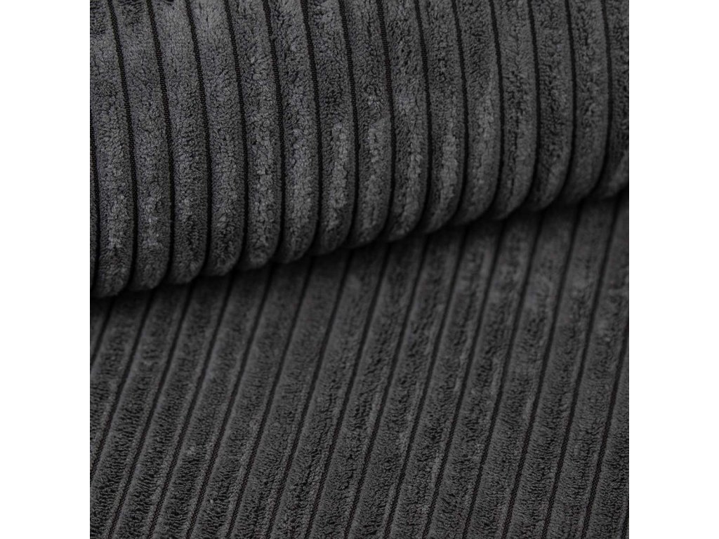 Šířka 300 cm, výška 92 cm, hloubka 145 cm. Spací plocha 130x265 cm. Minimalistická sedací souprava do tvaru U. Úložný prostor s rozkládacím mechanismem. Sedačka potažena šedou látkou Poso 34.