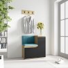 Tento model minimalistické sestavy do chodby vám nabídne moderní vzhled díky kombinaci barev artisan/černá, doplněné barevnými čalouněnými panely, věšákem, výklopným botníkem a malou skříňkou.