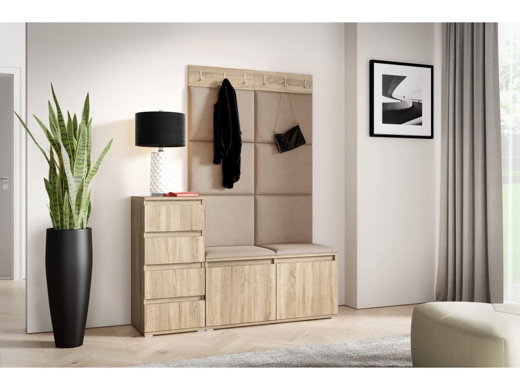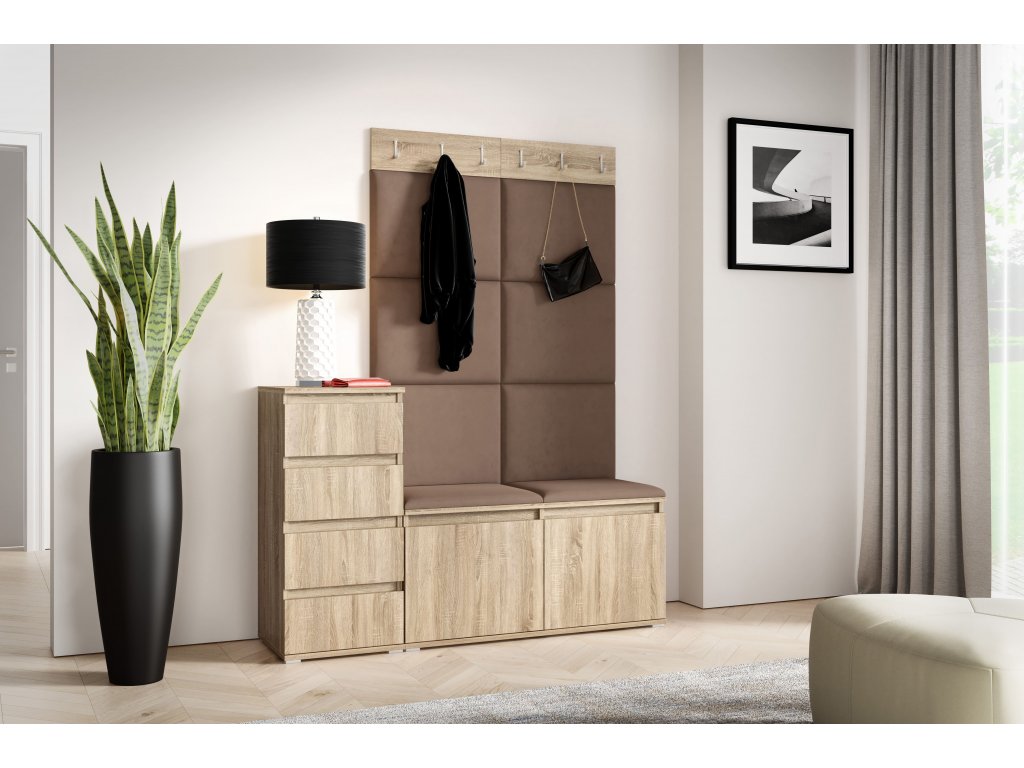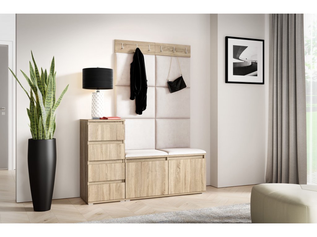 | Set: | Botník, Věšák, Čalouněné panely, Komoda |
