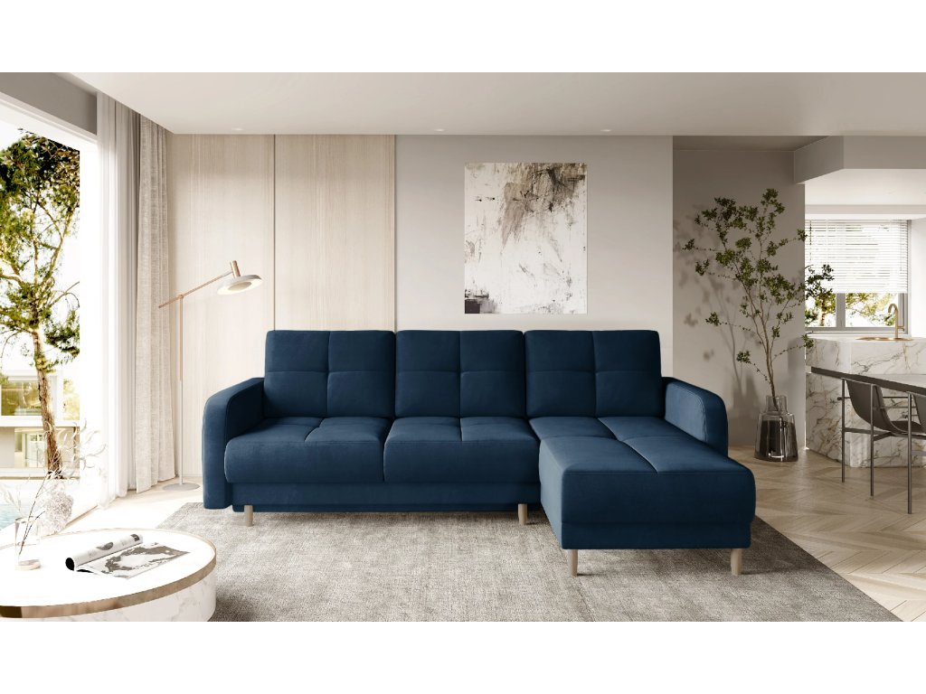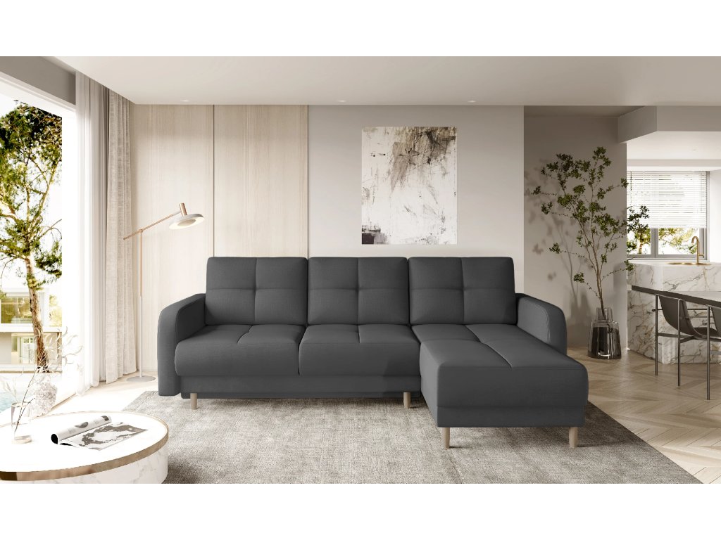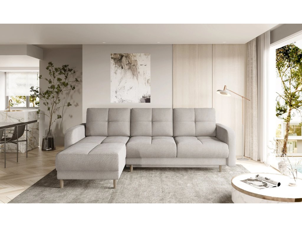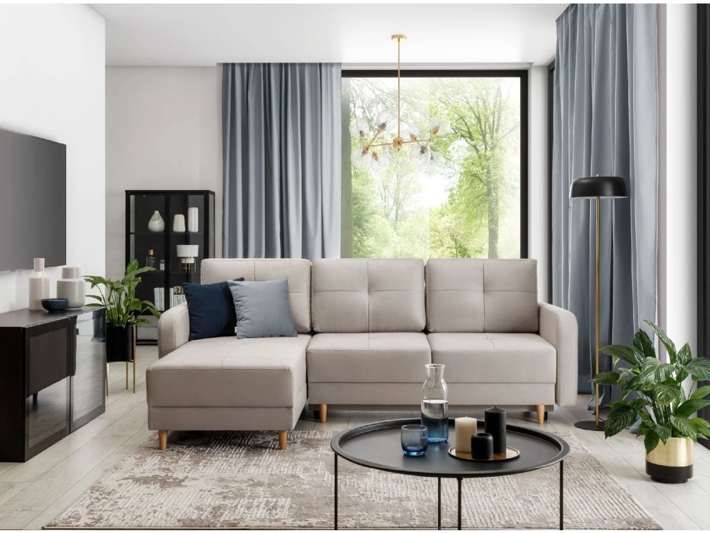 Elegantní linie, jednoduchý styl a praktický úložný prostor. Existuje mnoho důvodů, proč si zamilovat rohovou pohovku Reva. Tato rohová pohovka s funkcí spaní je ideální volbou pro nedělní odpolední lenošení. Naše rohová pohovka nabízí spací plochu o rozměrech 215 x 120 centimetrů, takže je ideální pro nečekané hosty, kteří chtějí zůstat přes noc. Další výhodou této rohové pohovky je její přihrádka na ložní prádlo , která umožňuje snadné uložení dalších polštářů, dek nebo ložního prádla pro hosty.