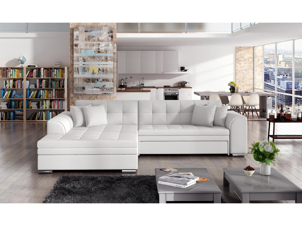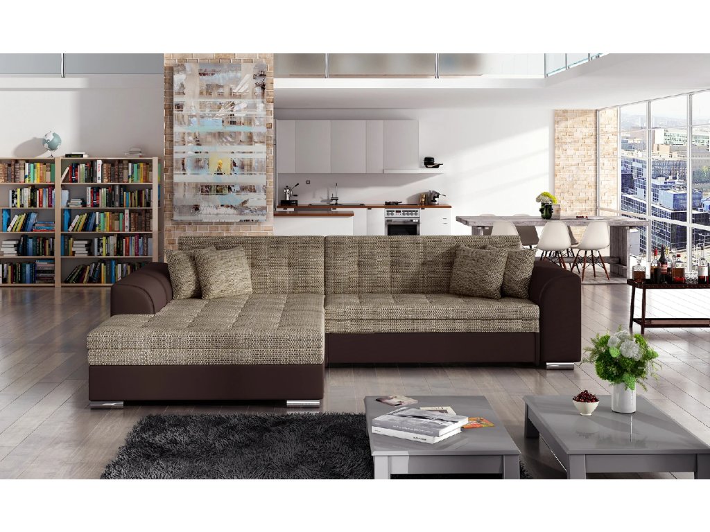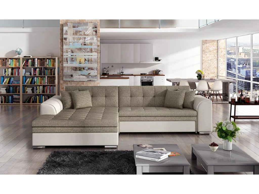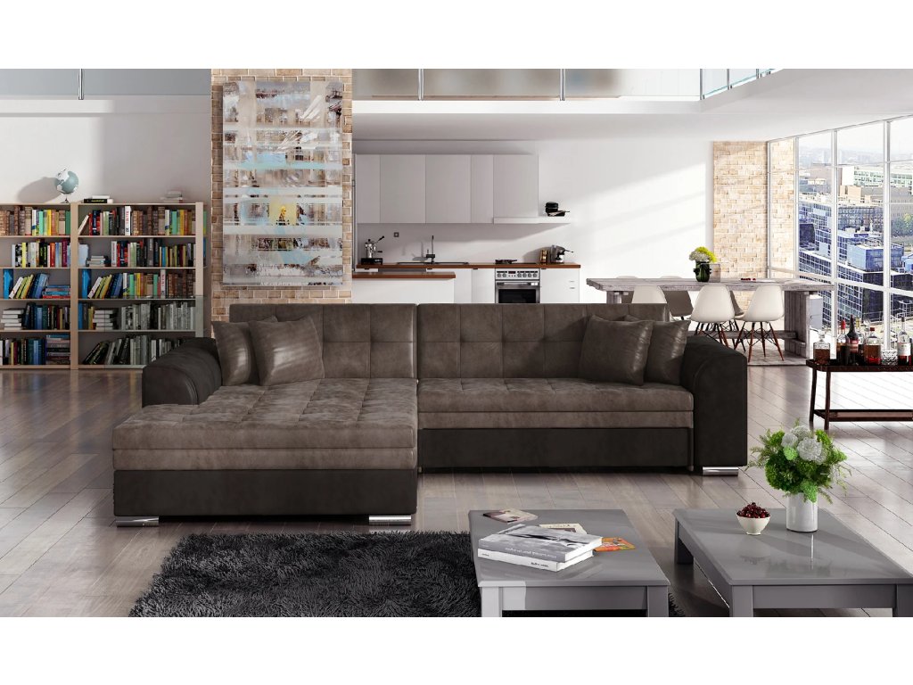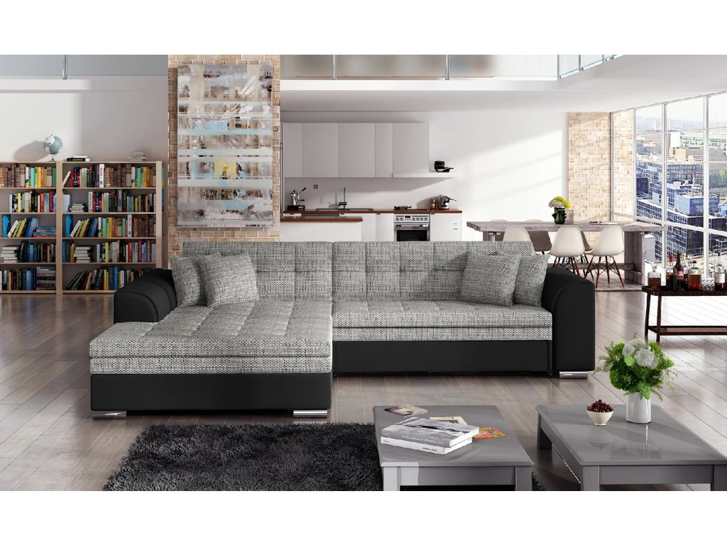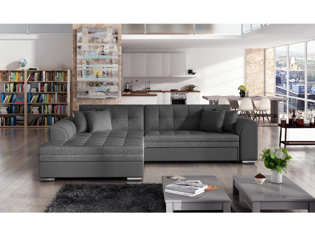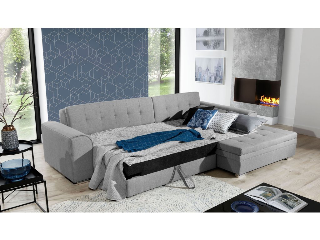 Její pečlivě tvarovaná opěrka zvyšuje pohodlí, stejně jako sedáky, které jsou měkké a stabilní. To vše díky výplni z vlnitých pružin a pěny T30. Díky funkci spaní ve stylu delfína lze rohovou pohovku během mžiku oka přizpůsobit vašim potřebám. Sedačka je dostupná v široké škále látek. Navzdory absenci úložného prostoru na ložní prádlo je tento model ideální jako prostorné místo pro noční odpočinek.