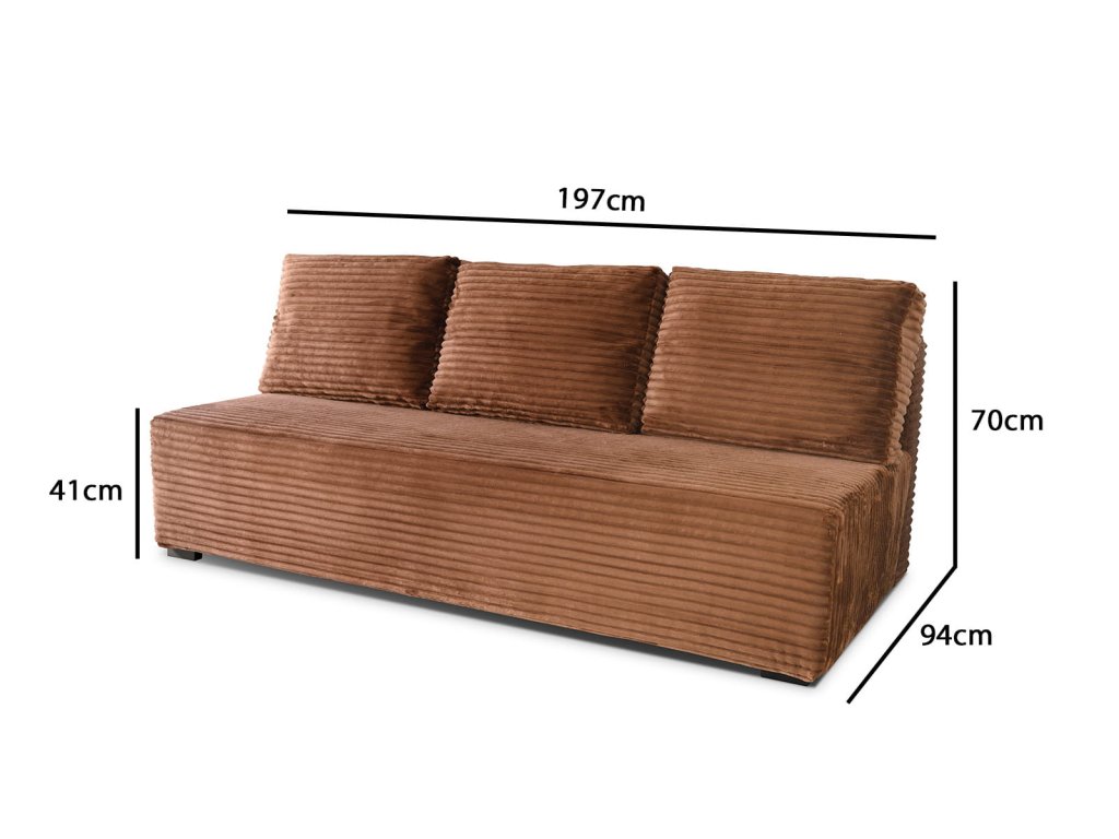 Šířka 197 cm, výška 70 cm, hloubka 94 cm. Moderní pohodlná pohovka. Velký úložný prostor s funkcí spaní. Výběr z mnoha barevných variant čalounění a nožiček.