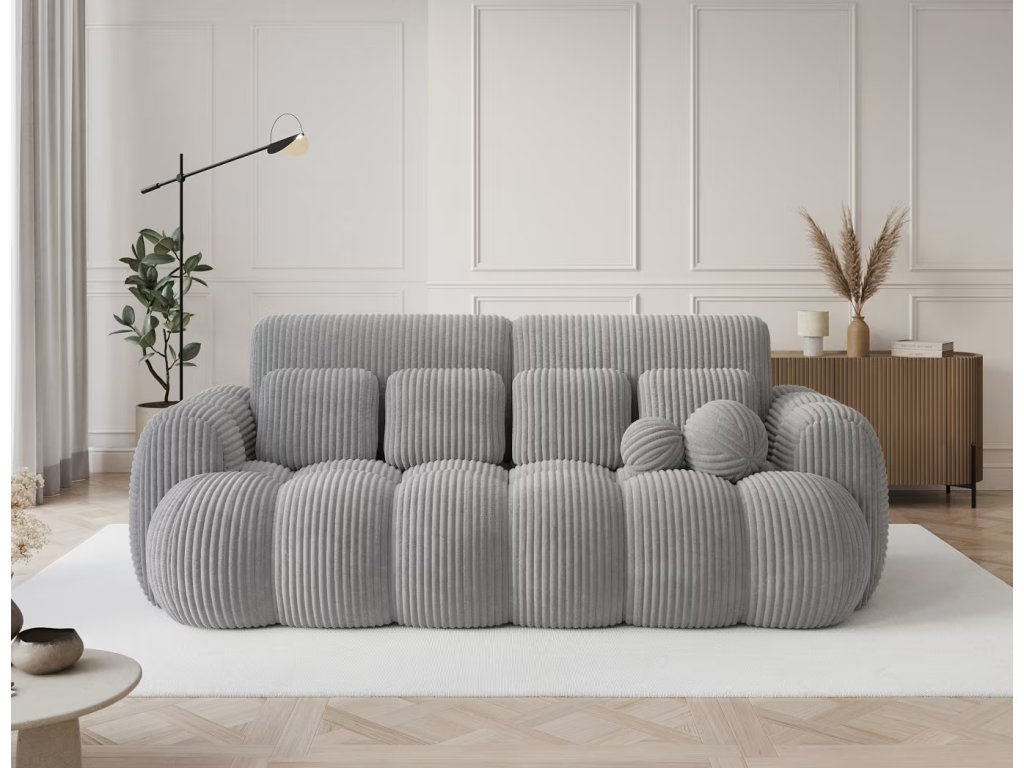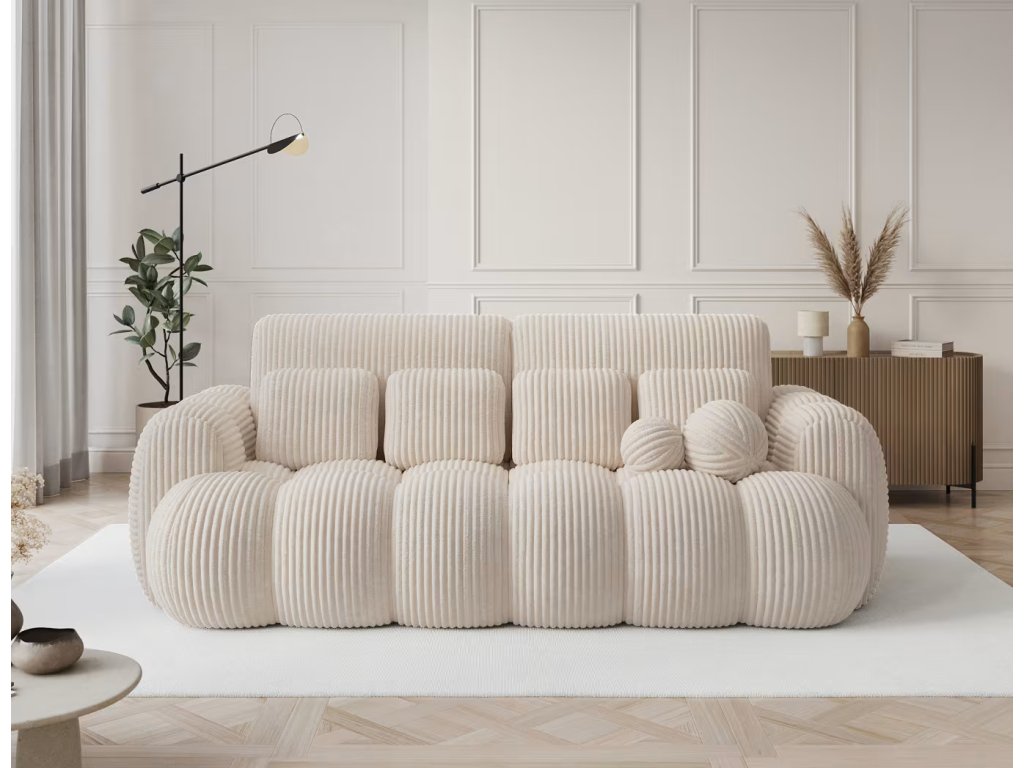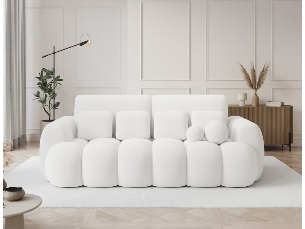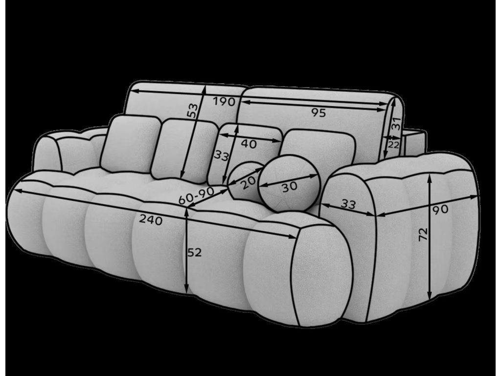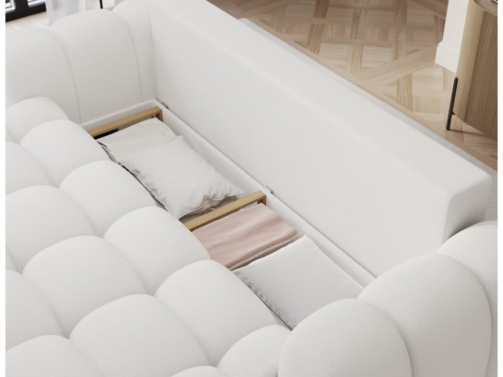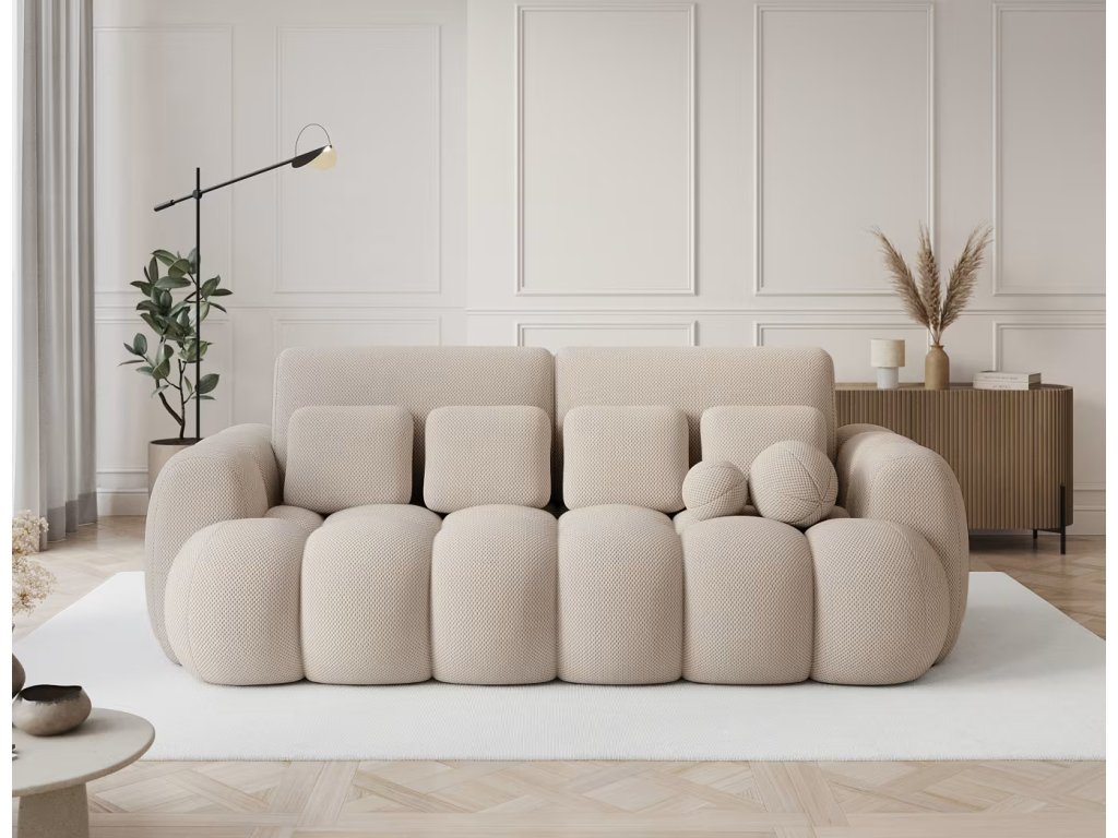 Hledáte praktickou pohovku do vašeho pokoje, nebo kanceláře? Tato čalouněná pohovka s prošíváním, která má malý úložný prostor na lůžkoviny a spací plochu pro jednu osobu o rozměru 190x142 cm je ideální volba. Pohodlí zajísti kombinace několika druhů pěny. Má čtyři střední polštářky a dva malé kulaté dekorativní.