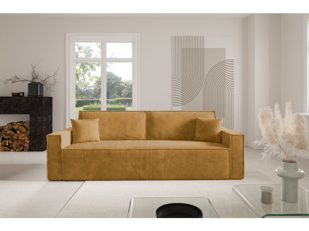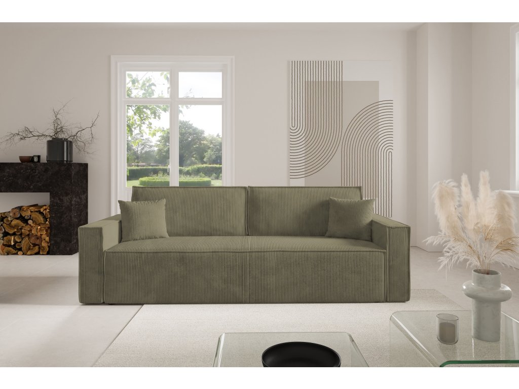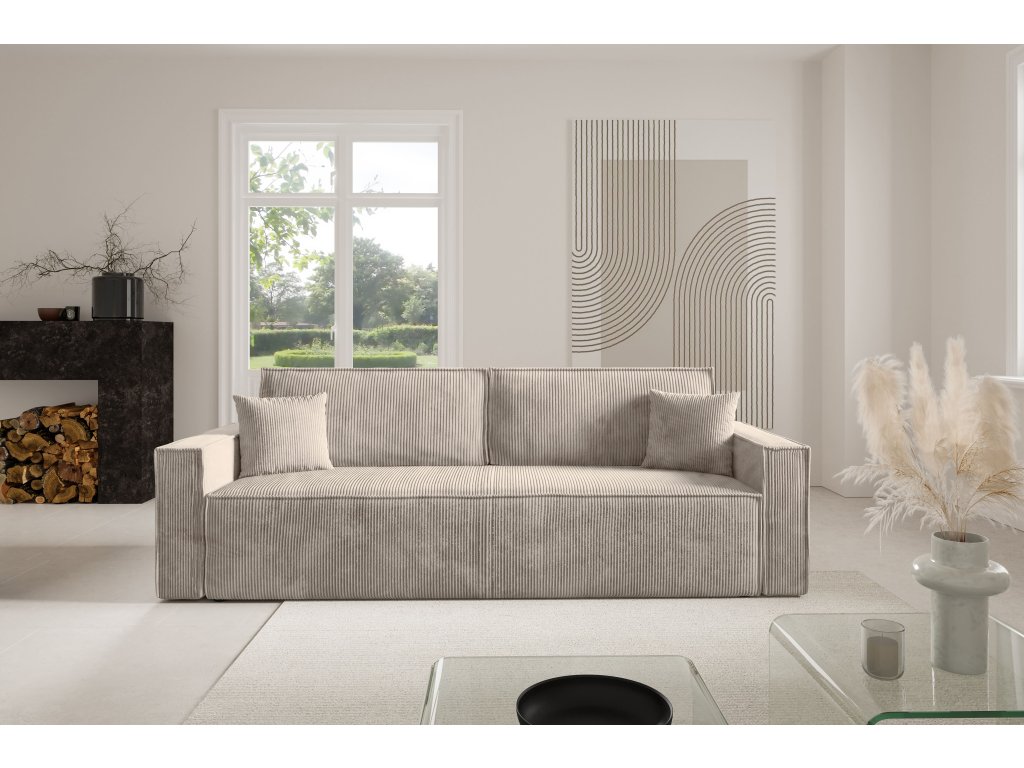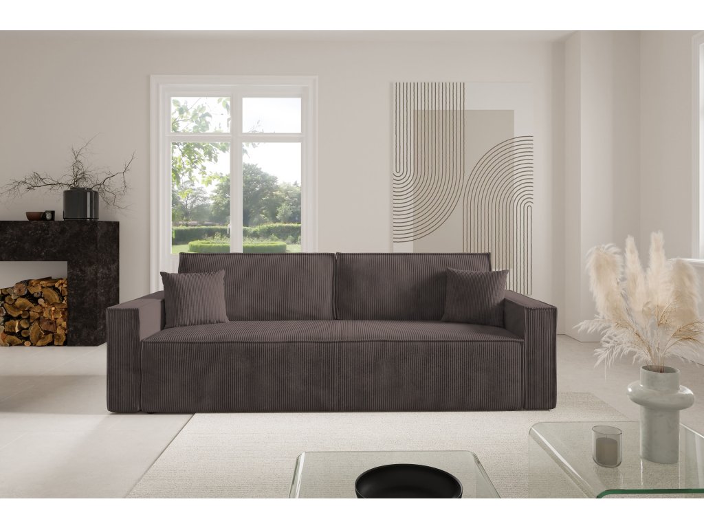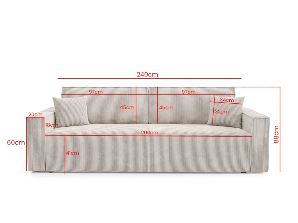 Šířka 240 cm, výška 88 cm, hloubka 79 cm. Moderní komfortní pohovka s velkým úložným prostore a funkcí spaní. Výběr z mnoha barevných variant čalounění.