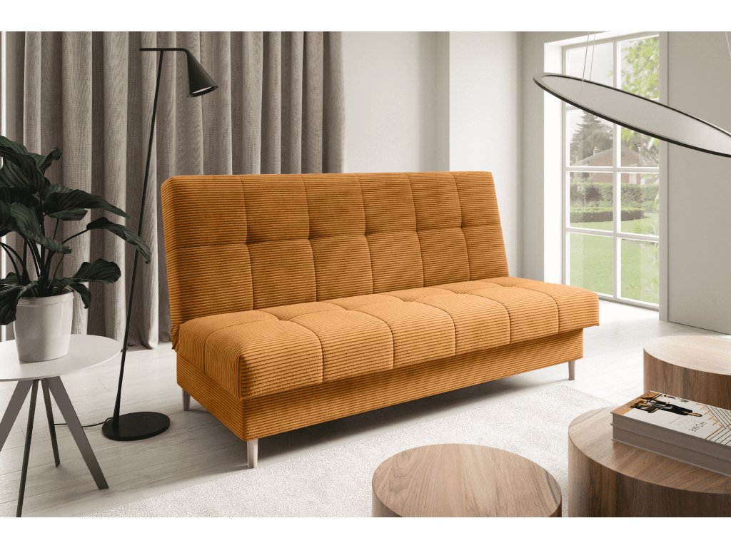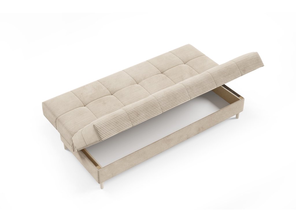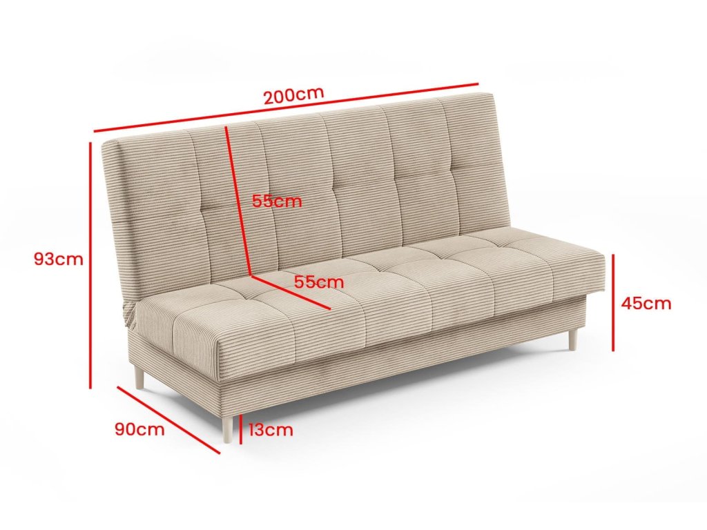 Hledáte praktickou sedačku do vašeho pokoje, nebo kanceláře? Tato praktická čalouněná pohovka s prošíváním, která má malý úložný prostor na lůžkoviny a spací plochu pro jednu osobu o rozměru 200x110 cm je ideální volba.