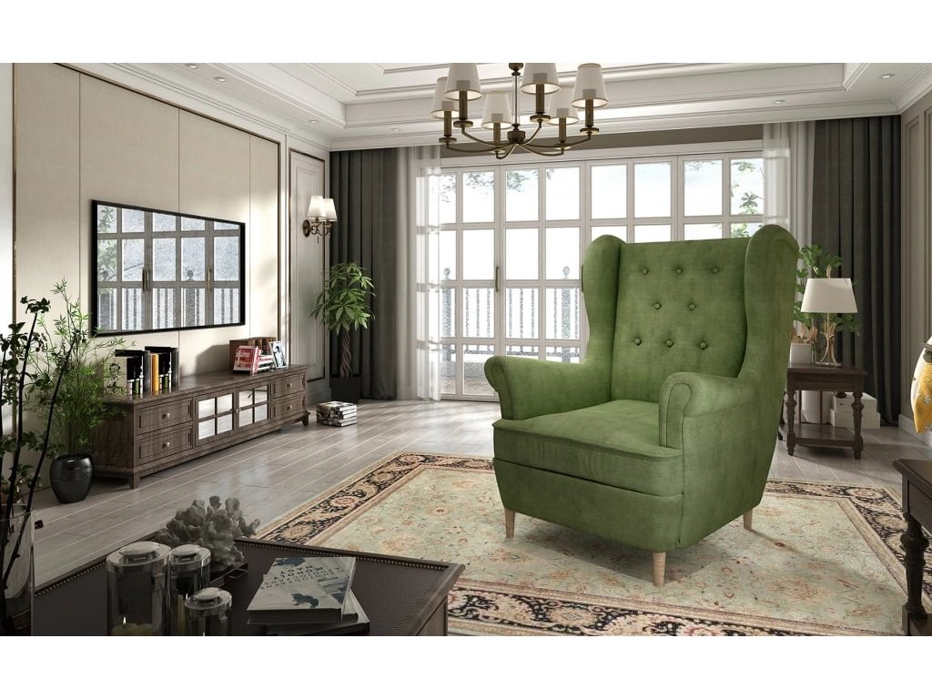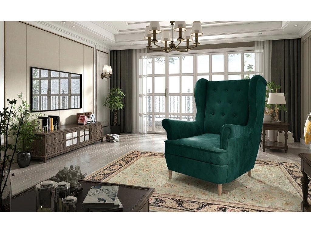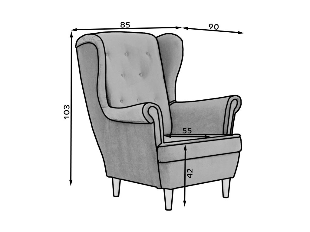 Tento typ ušáku bude centrum pozornosti ve vašem obývacím pokoji, ve kterém se vám bude příjemně odpočívat. Jeho unikátní vzhled a moderní design v kombinaci s klasickým stylem je vhodným dekoračním doplňkem do vašich pokojů. O rozměrech 72x100x60 cm poskytuje dostatek prostoru k sezení a relaxaci. Pohodlný tvar křesla z něj činí ideální místo pro ponoření se do čtení vaší oblíbené knihy nebo časopisu. Křeslo zaujme každého návštěvníka.