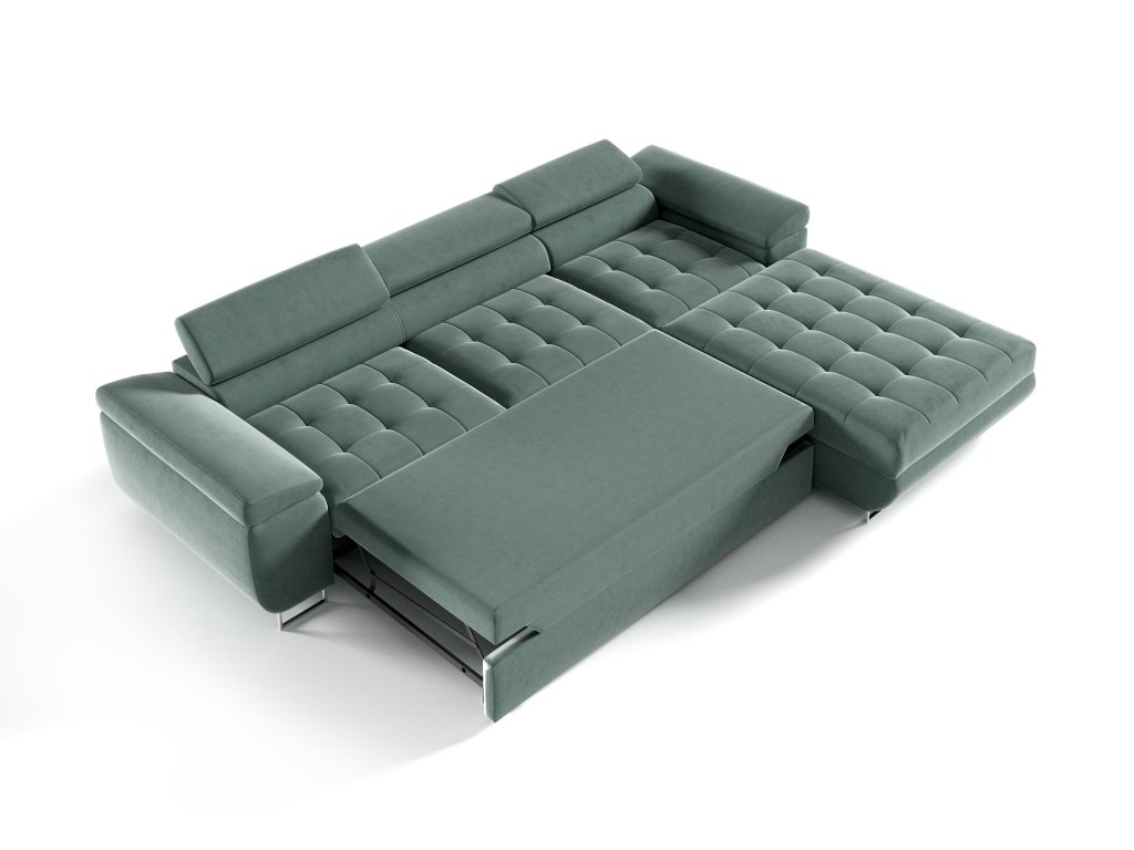Sedací souprava disponuje úložným prostorem pro ukládání lůžkovin, a rozkládací systém s mechanismem typu delfin vám jednoduše umožní vytvořit spací plochu (215x123 cm) pro komfortní spánek.