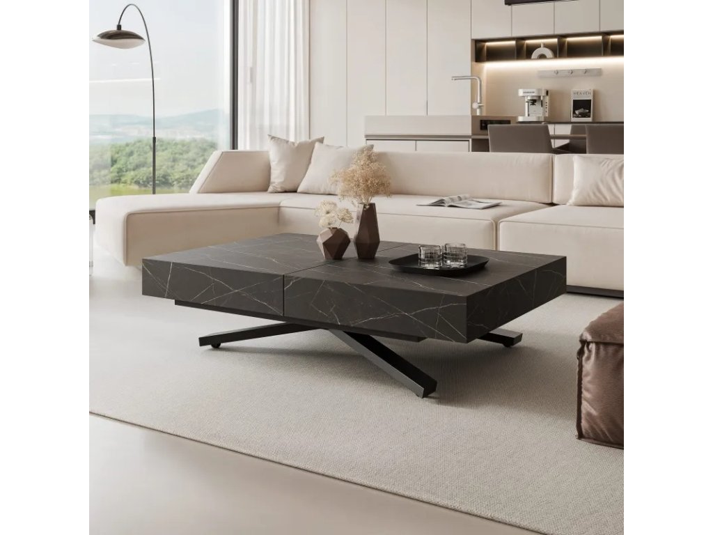 Konferenční stolek Sydney je unikátní a inovativní kus nábytku, který se perfektně hodí do moderních, kompaktních prostor, jako jsou malé byty nebo studia. Jeho promyšlený design umožňuje plné využití dostupného prostoru a zároveň nabízí mimořádně široké funkční možnosti. Díky své unikátní funkci výsuvu a zvedání tento všestranný konferenční stolek nahrazuje tradiční jídelní stůl a zároveň šetří cenné místo.