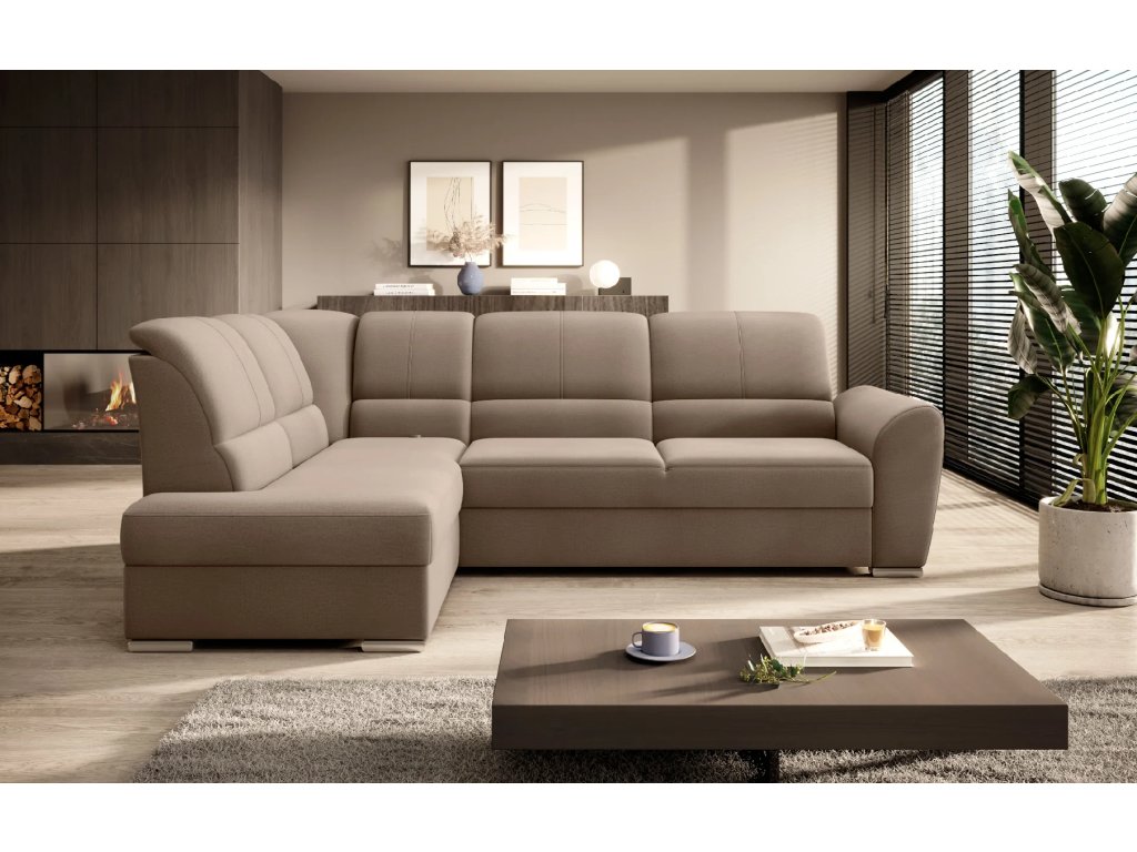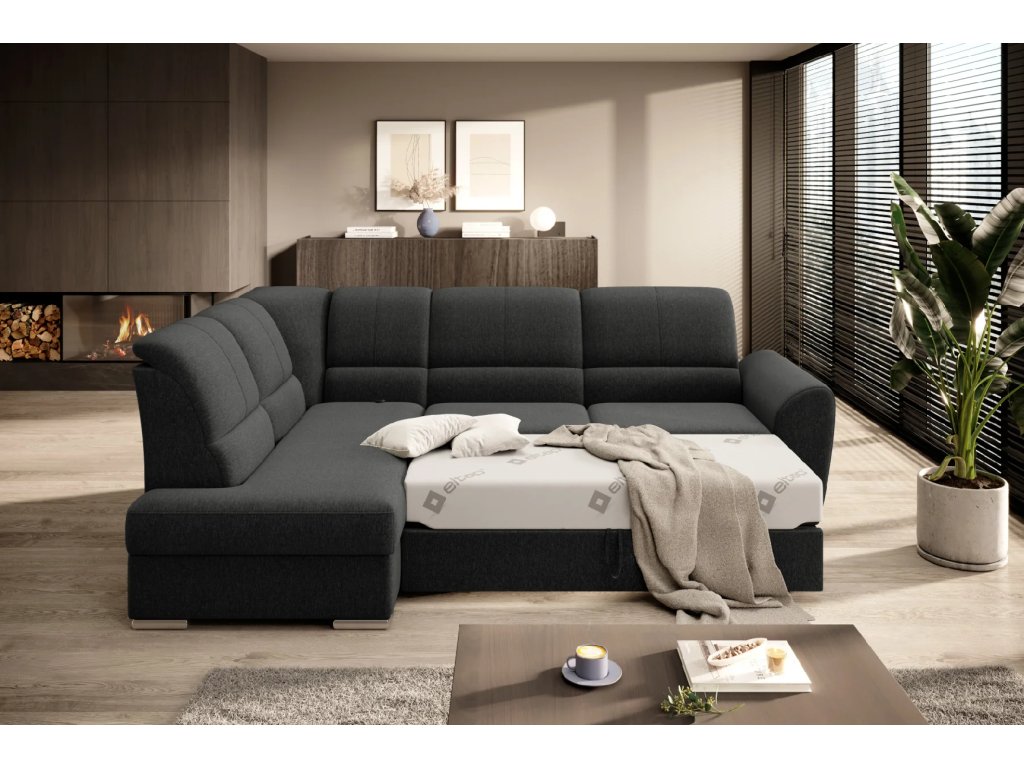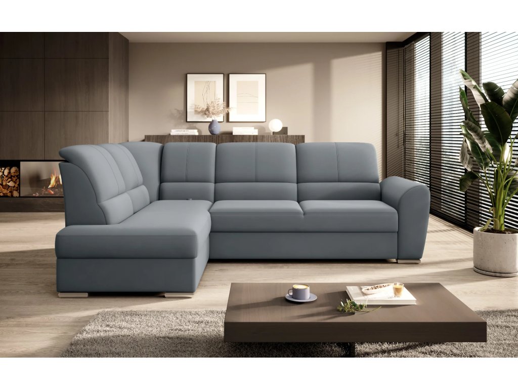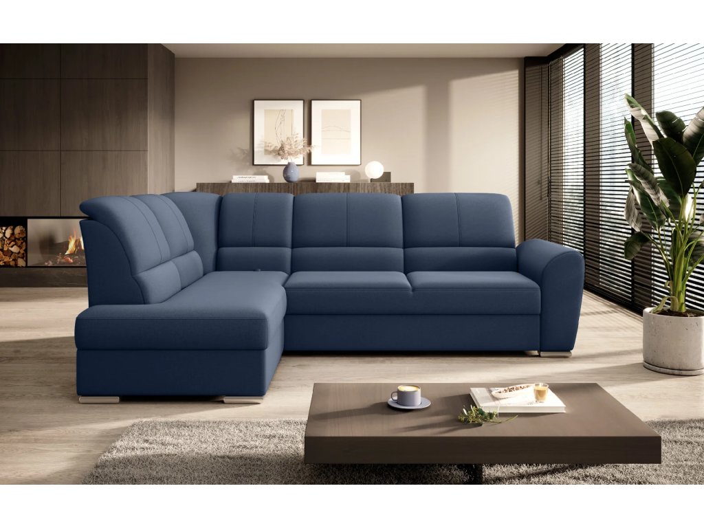 Šířka 270 cm, výška 93 cm, hloubka 186 cm. Spací plocha 205 x 125 cm. Praktická a moderní sedací souprava do tvaru L. Rozkládací mechanismus s úložným prostorem. Opěrky hlavy a zad. Výběr z mnoha barevných variant čalounění. V pravé i levé orientaci rohu.