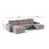 Šířka 325 cm, výška 96 cm, hloubka 170 cm. Spací plocha 124x297 cm. Moderní rozkládací sedací souprava ve tvaru U s nastavitelnými opěrkami a úložným prostorem. Výběr z mnoha barevných variant čalounění.