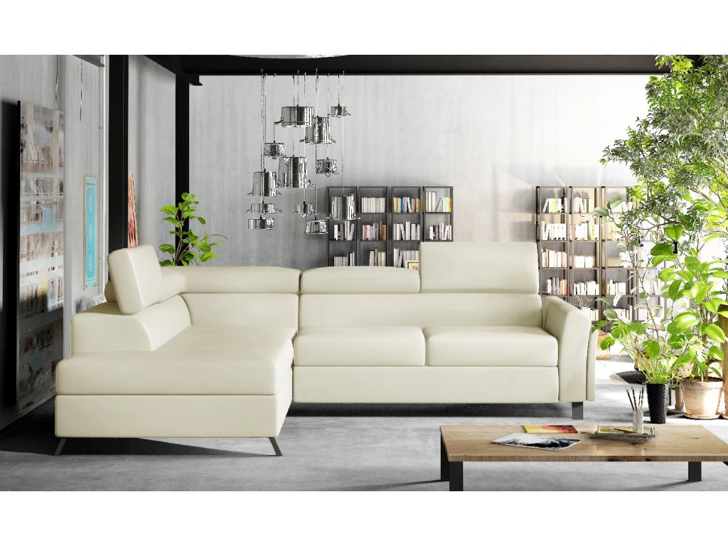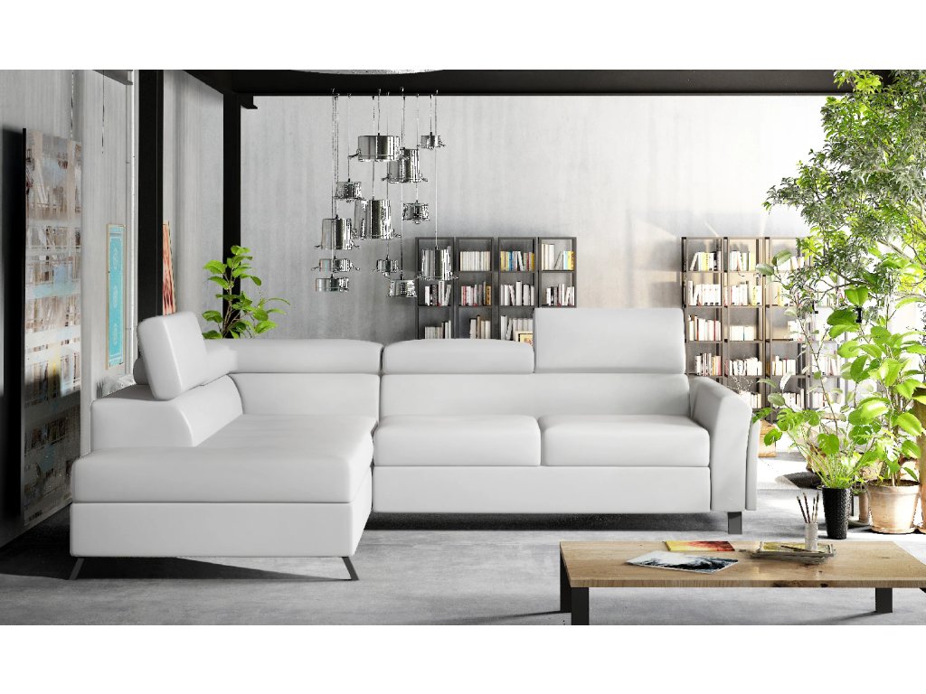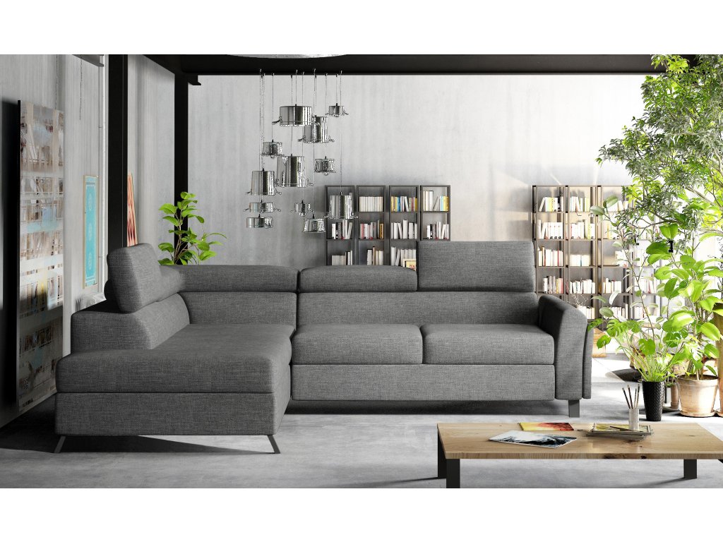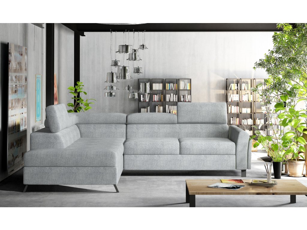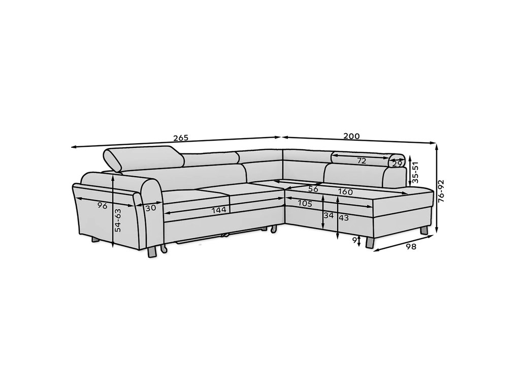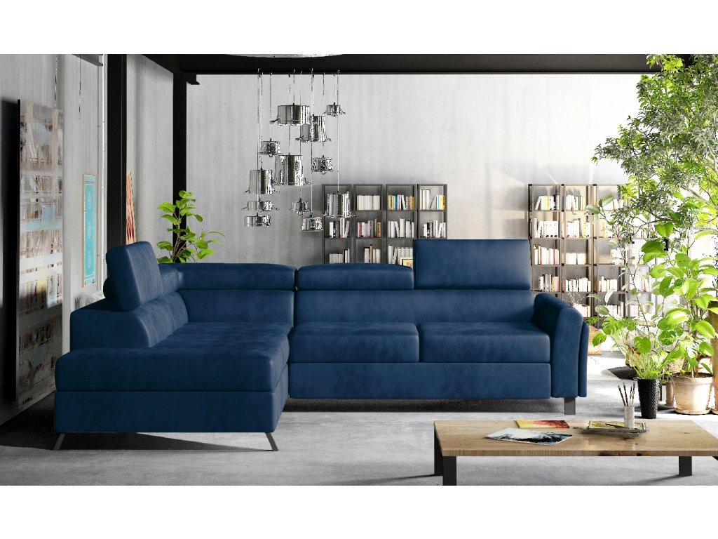 Šířka 265 cm, výška 76-92 cm, hloubka 200 cm. Spací plocha 200x123 cm. Pohodlná sedačka do tvaru L. Rozkládací s úložným prostorem. Výběr z mnoha barevných variant čalounění. V pravé i levé orientaci rohu.
