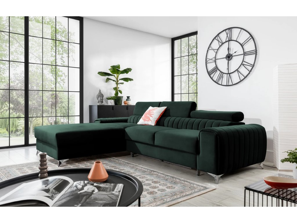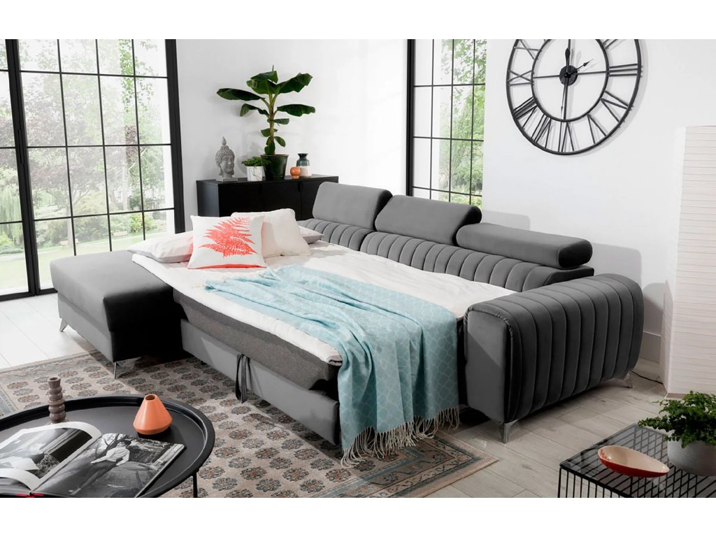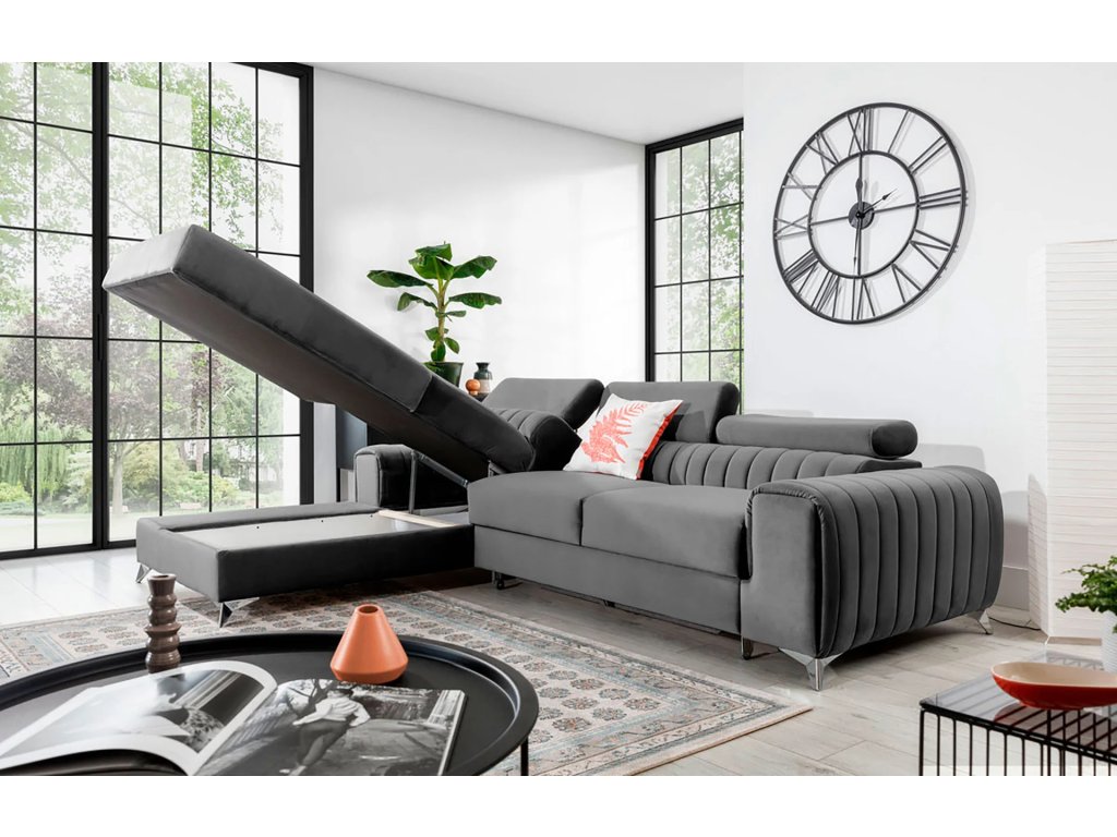 Nastavitelné opěrky hlavy ještě více umocní pocit pohody. Naštěstí má funkci spánku Dolphin, která se intuitivně používá. To znamená, že pohovku snadno proměníte v pohodlnou postel. Sedačku doplňuje úložný prostor na ložní prádlo se zvedacím mechanismem. Sedačka má menší ocelové nožičky o velikosti 9 cm. Sedačka je dostupná v široké škále látek.