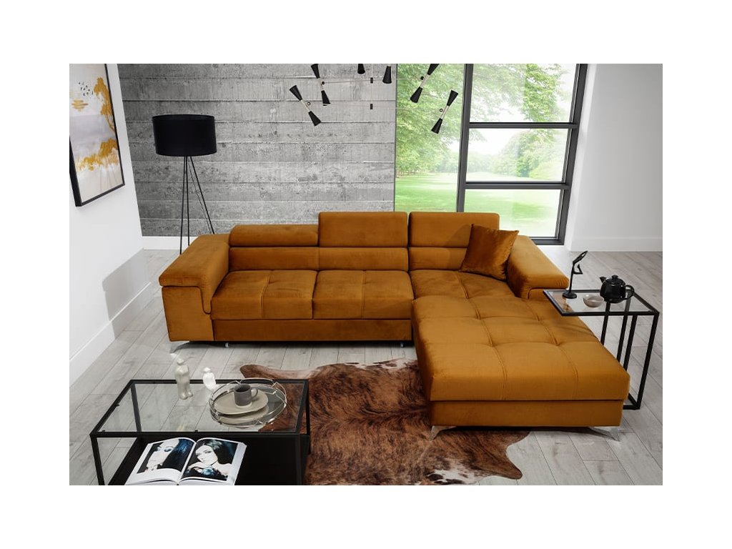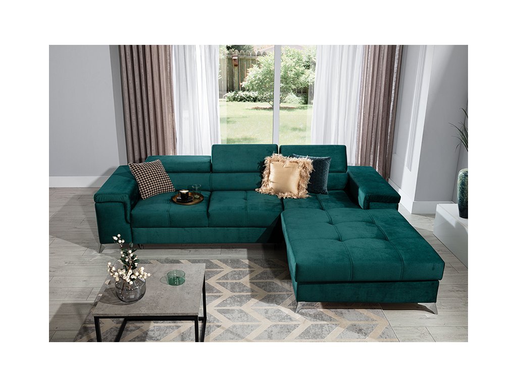 Hledáte pohodlný a stylový kus nábytku do obývacího pokoje? Objevte rohovou sedačku Raven, perfektní doplněk do každého rodinného domu! Pohodlí je u rohové sedačky Raven klíčové. Najdete zde sedák vyplněný vlnitými pružinami typu B, pěnou T3030 a tvarovanou pěnou HR3030. Design doplňují opěrky hlavy a opěradla vyplněné měkkou polyuretanovou pěnou T2130. Sedačka je vybavena polohovatelnými opěrkami hlavy, pro ještě větší pohodlí.