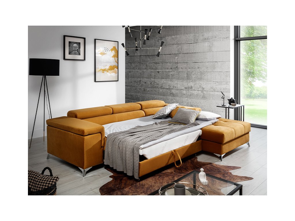 Naštěstí má funkci spánku Dolphin, která se intuitivně používá. To znamená, že pohovku snadno proměníte v pohodlnou postel. Sedačku doplňuje úložný prostor na ložní prádlo se zvedacím mechanismem. Sedačka má menší kovové nožičky o velikosti 9 cm. Sedačka je dostupná v široké škále látek.