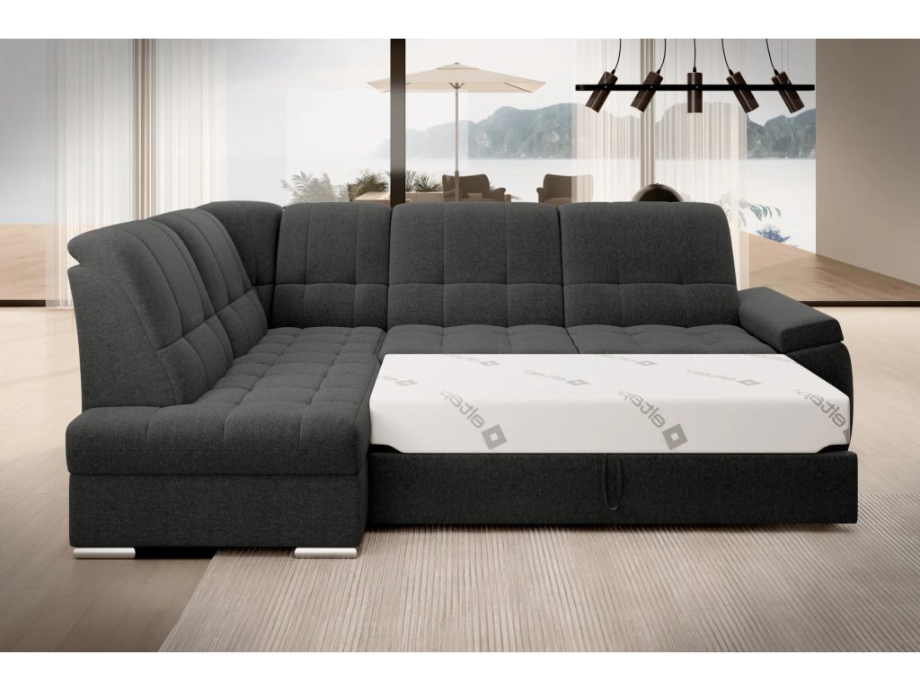 Šířka 272 cm, výška 95 cm, hloubka 192 cm. Spací plocha 207x130 cm. Pohodlná sedačka do tvaru L. Rozkládací s úložným prostorem. Výběr z mnoha barevných variant čalounění. V pravé i levé orientaci rohu.