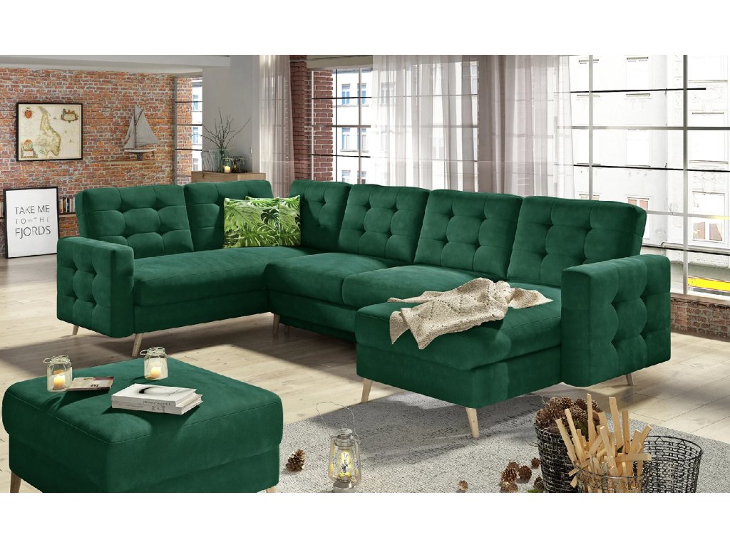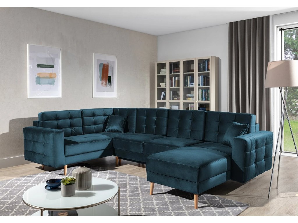 Máte prostorný obývací pokoj? Vybavte se pohodlným, čalouněným kusem nábytku ve správných rozměrech. Prostorná rohová sedačka Sawana U bude perfektní volbou! Vyznačuje se moderním designem, který kombinuje jednoduchost s elegancí. Její design ve tvaru U poskytuje dostatek prostoru pro relaxaci. Kromě mimořádně stylového vzhledu je také funkční. Kromě dostatku prostoru pro relaxaci během dne nabízí rohová pohovka i další funkci spaní a prostorný úložný prostor na ložní prádlo .