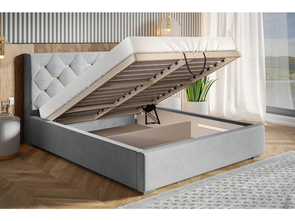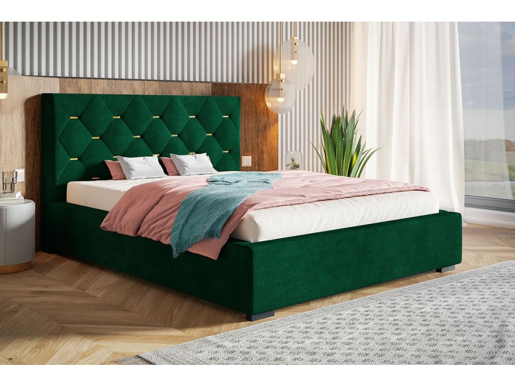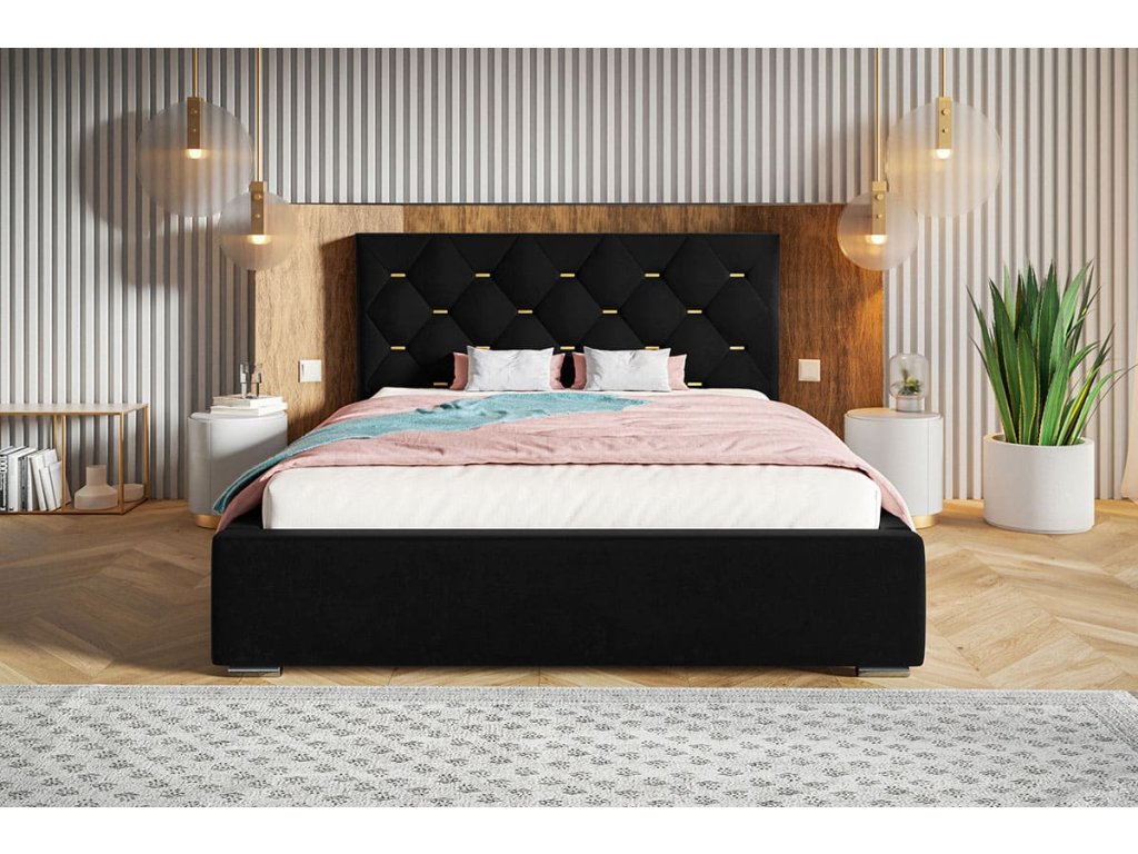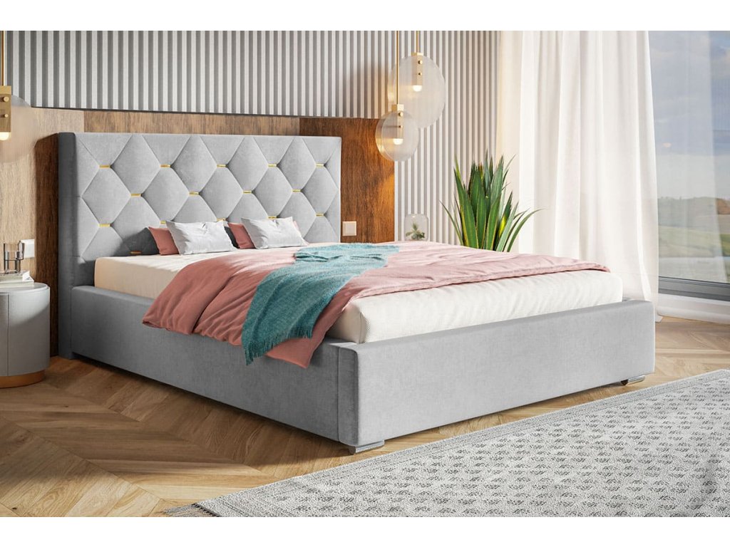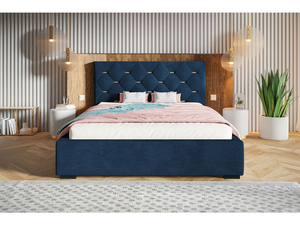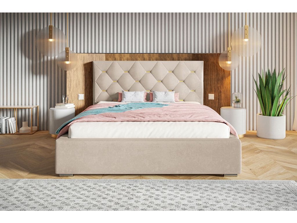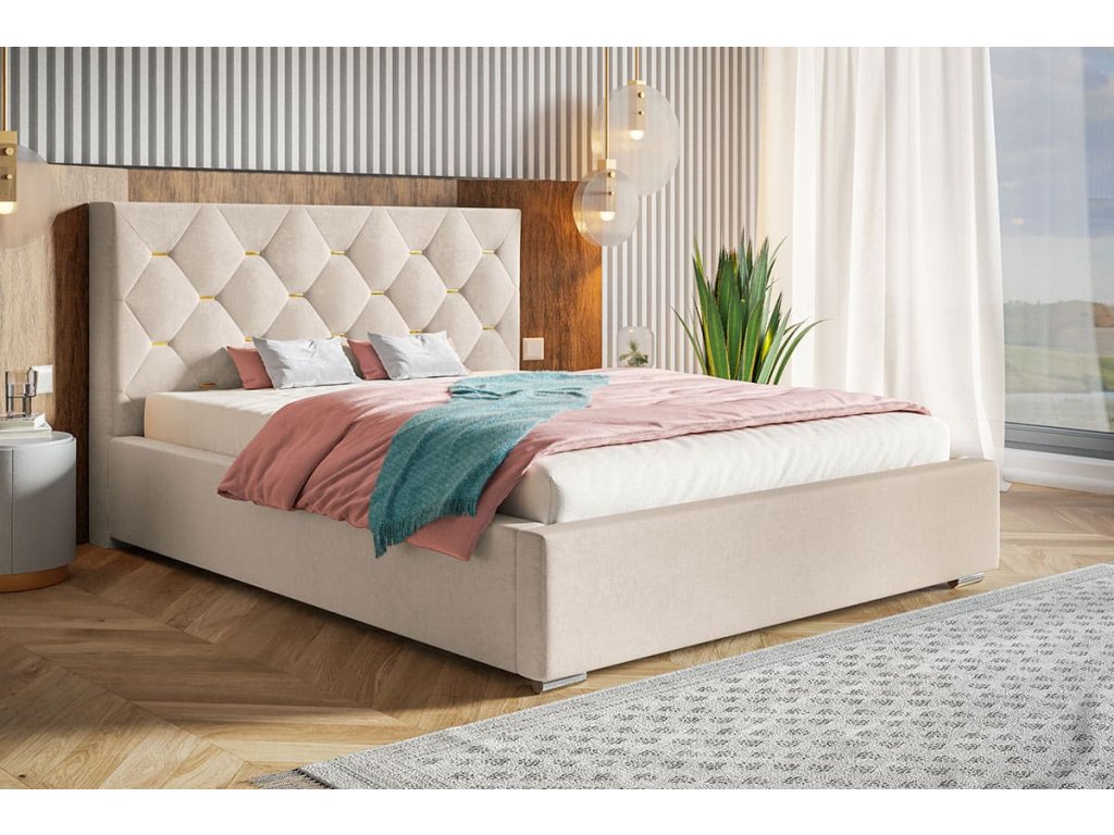 Tento typ velké postele zaujme svým prošívaným čelem, zdobené zlatými pásky, které dodávají lůžku luxusní vzhled. Postel disponuje velkým úložným prostorem pro uschování lůžkovin.