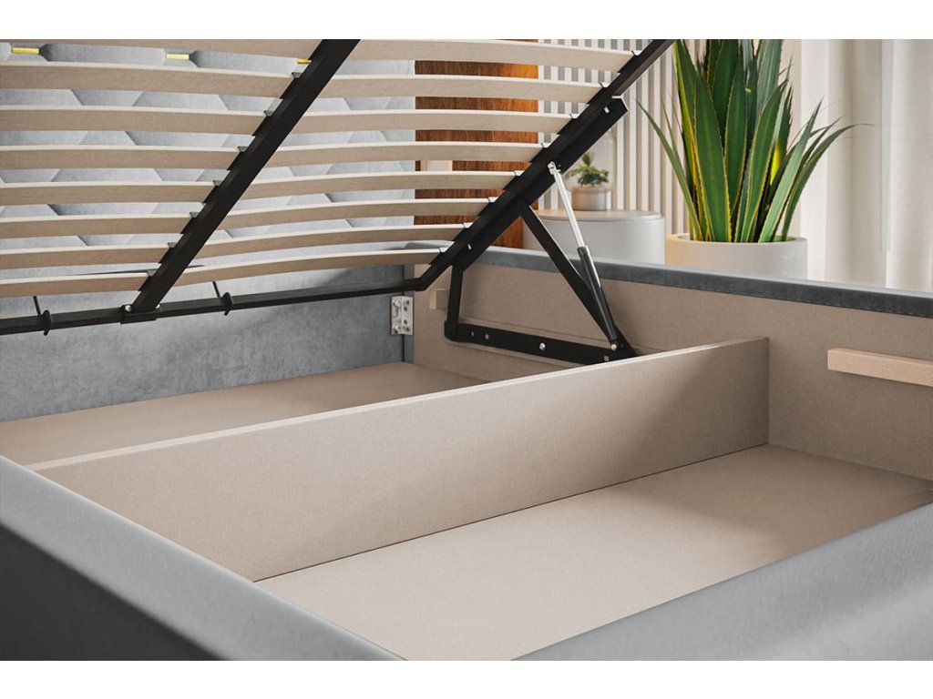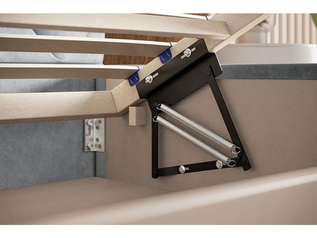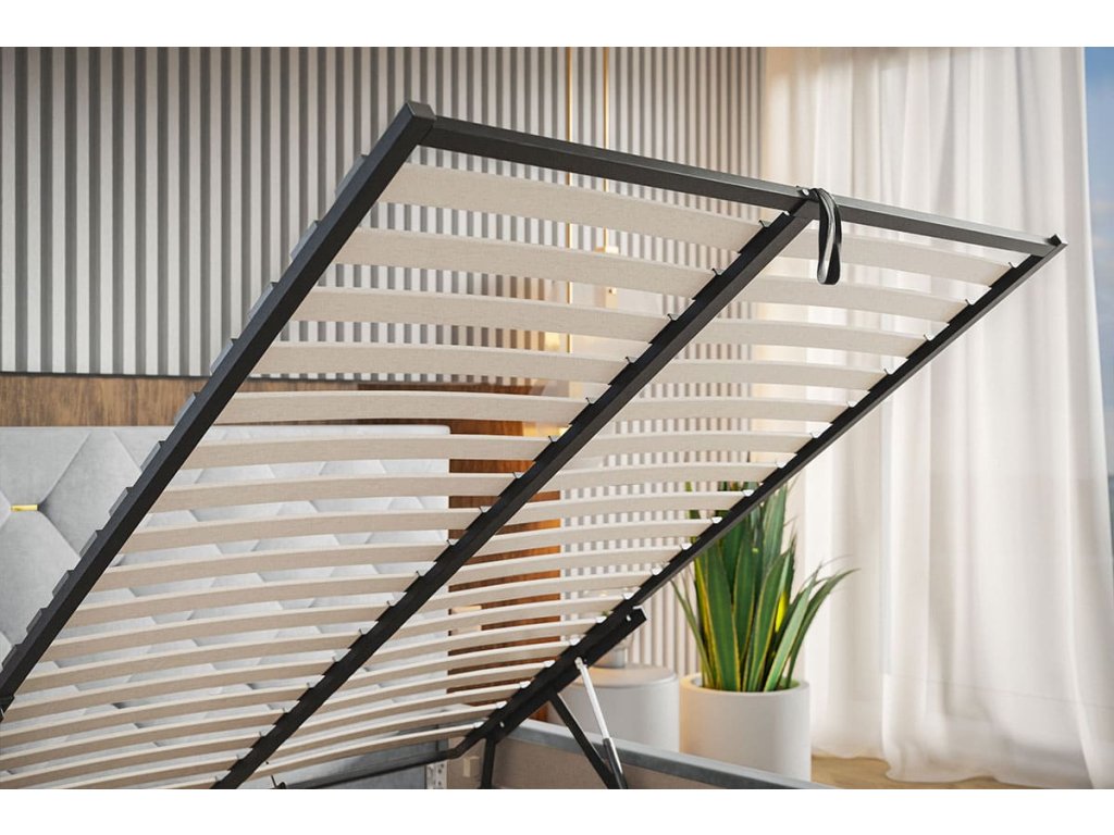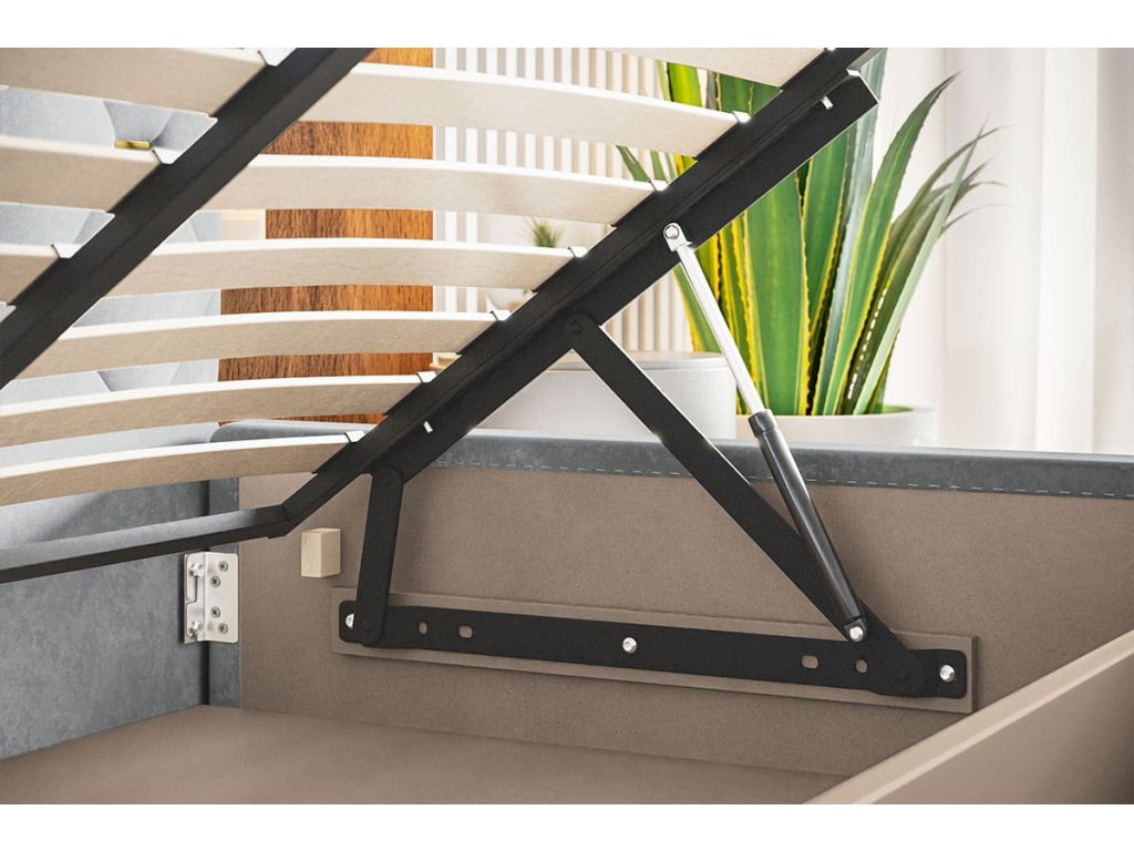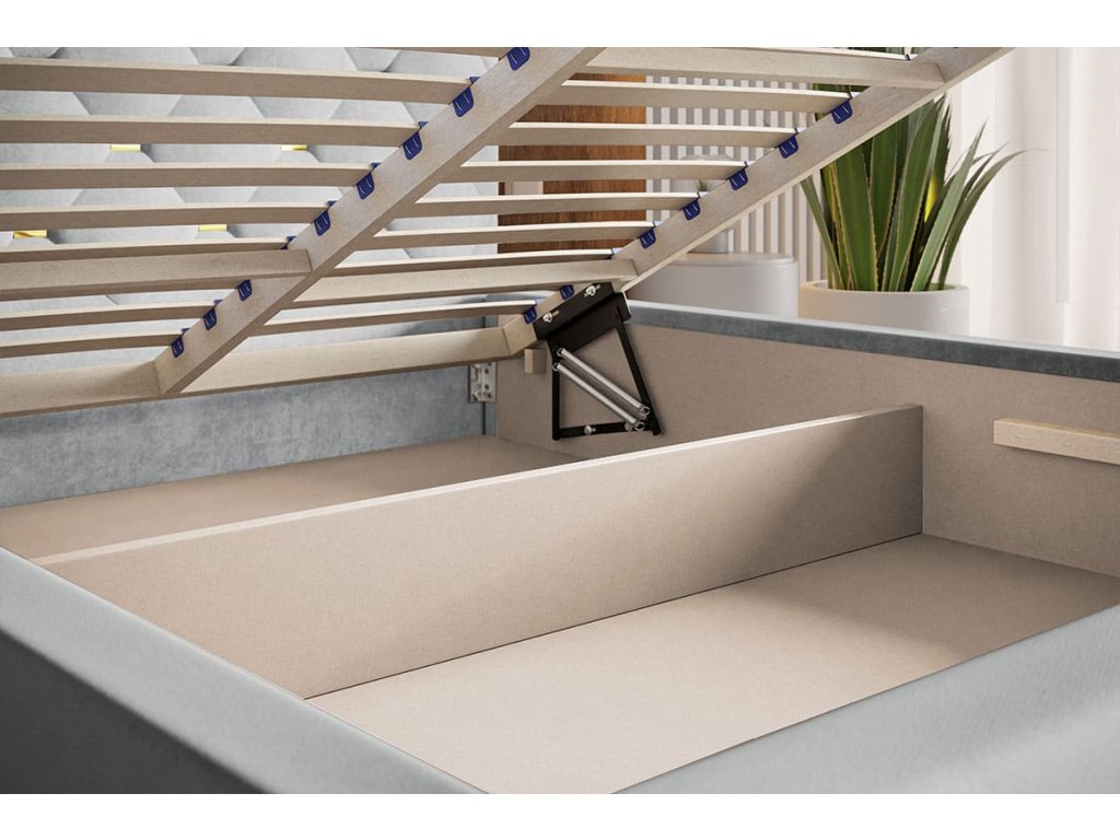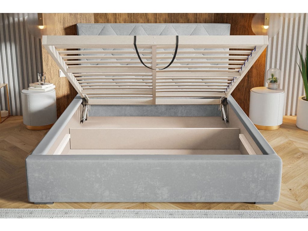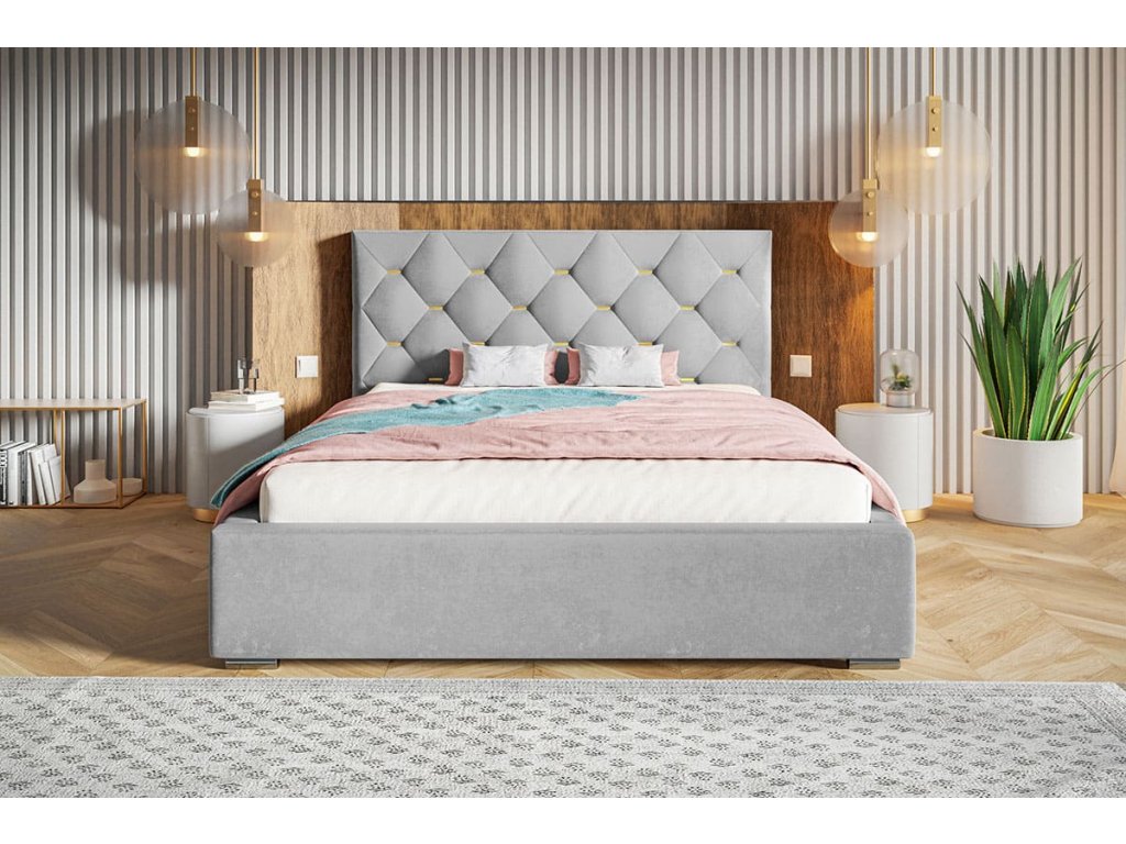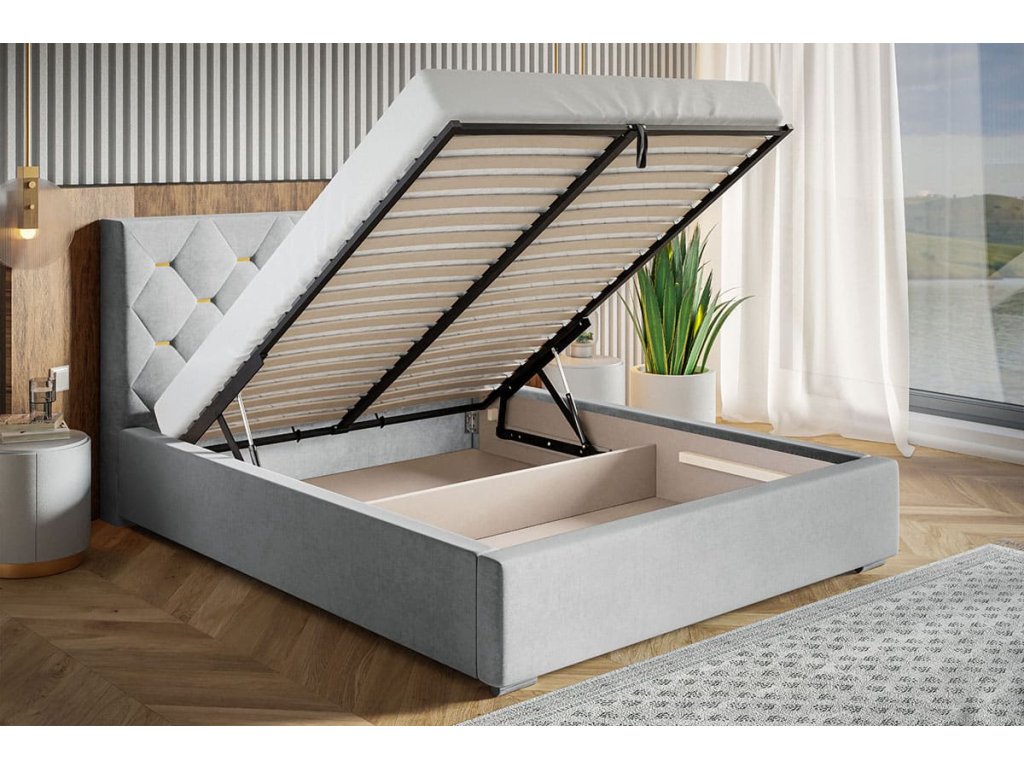Tento typ velké postele zaujme svým prošívaným čelem, zdobené zlatými pásky, které dodávají lůžku luxusní vzhled. Postel disponuje velkým úložným prostorem pro uschování lůžkovin.