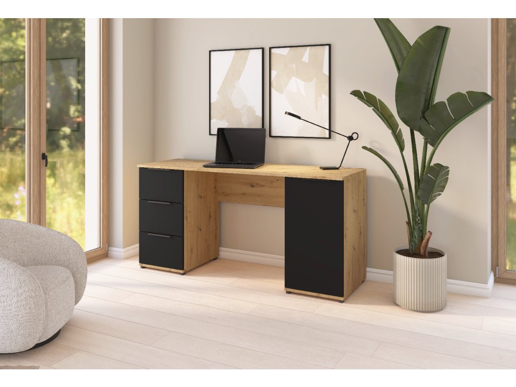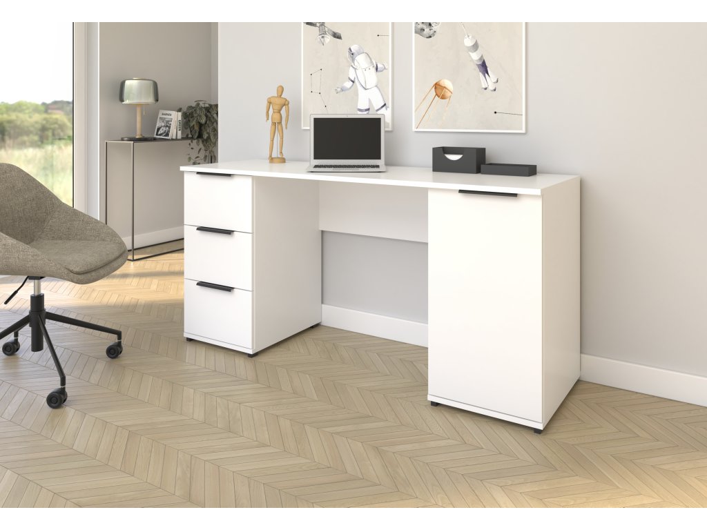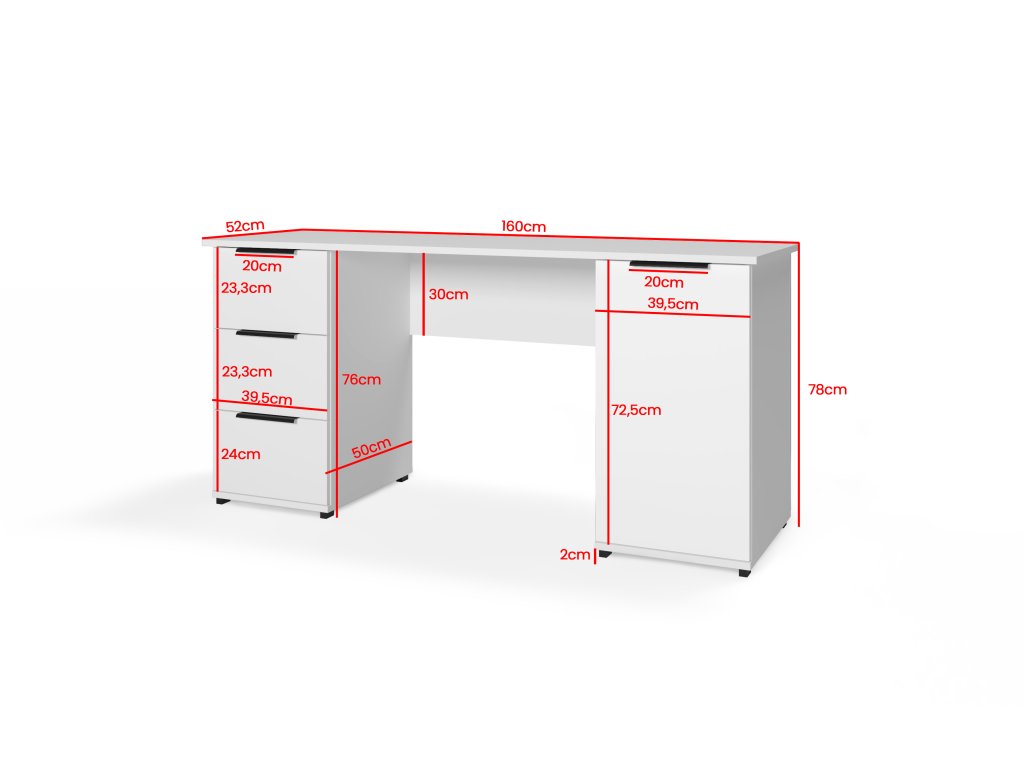 Šířka 160 cm, hloubka 52 cm, výška 78 cm. Pracovní stůl v rohovém stylu s praktickým úložným prostorem. Orientaci si můžete zvolit při montáži.