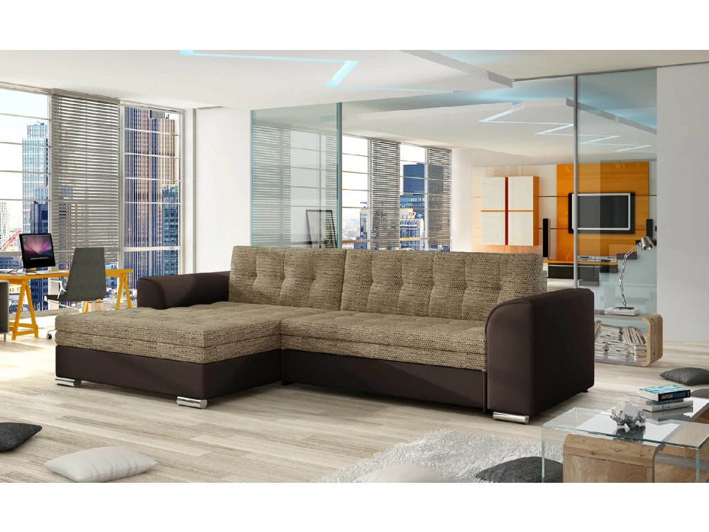 Šířka 275 cm, výška 78 cm, hloubka 165 cm. Spací plocha 200x126 cm. Všestranná sedačka do tvaru L. Rozkládací mechanismus bez úložného prostoru. Výběr z mnoha barevných variant čalounění. V pravé i levé orientaci rohu.