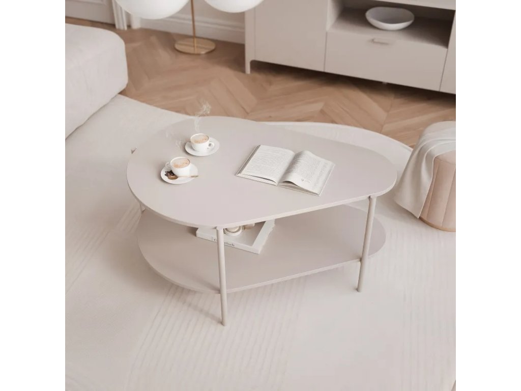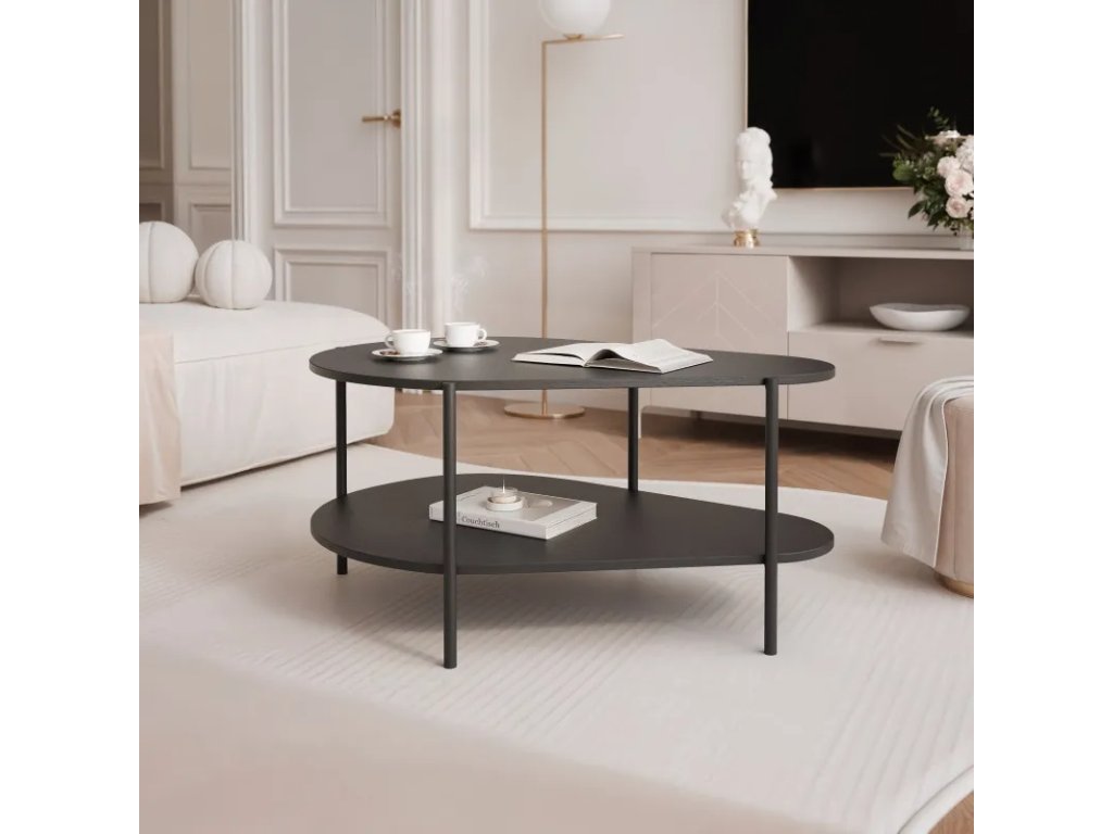 Tento organicky tvarovaný konferenční stolek s dvoupatrovou konstrukcí je dokonalou kombinací moderního designu a funkčnosti. Zaoblené hrany a robustní kovový rám mu dodávají jedinečný charakter, který se hodí do moderních i industriálních interiérů. Další spodní police poskytuje praktický prostor pro knihy, časopisy a dekorativní předměty. Díky kompaktním rozměrům je stolek ideální pro větší i menší prostory a kombinuje estetiku s pohodlím.